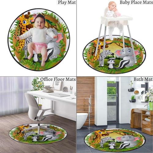 Round Rug 44 in Dog Rolling Chair Mat Cartoon Thick Home/Office Floor Protector Desk Chair Mats for Home Office Floor Carpets