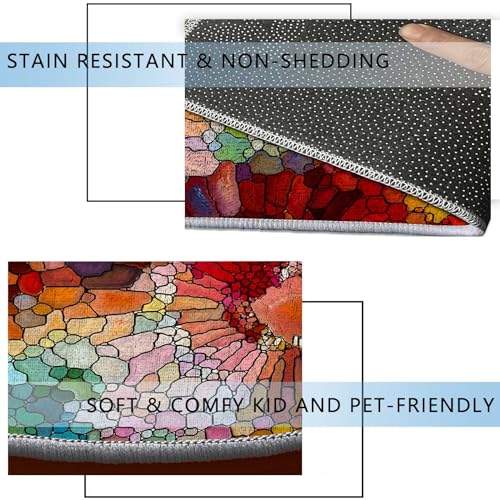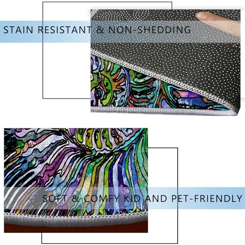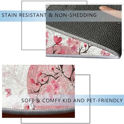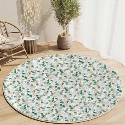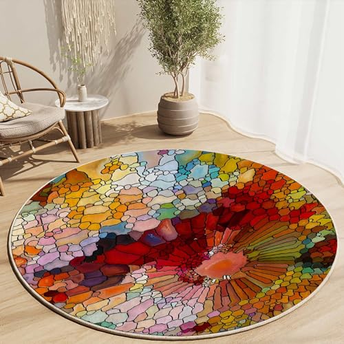 Round Rug 39 in Abstract Flowers Chair Mats for Low Pile Watercolor Floral Thick Floor Mats for Low Thick and Sturdy Desk Chair mat for Carpets