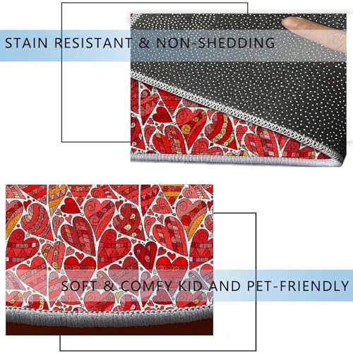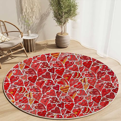 Round Rug 5 FT Hearts Rolling Chair Mat Watercolor Thick Hard Floor Protector Non-Slip Computer Desk Mat for Tile Floor, Rolling Chairs