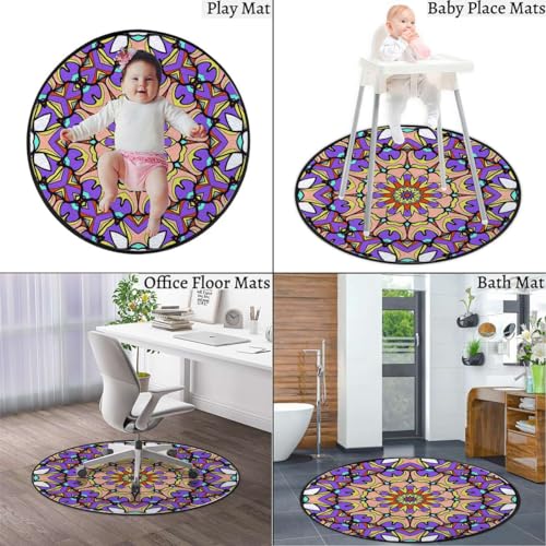 Round Rug 39 in Vintage Chair Mat for Carpet Mandala Under Desk Low-Pile Rug Office Chair Mat with Lip for Carpets