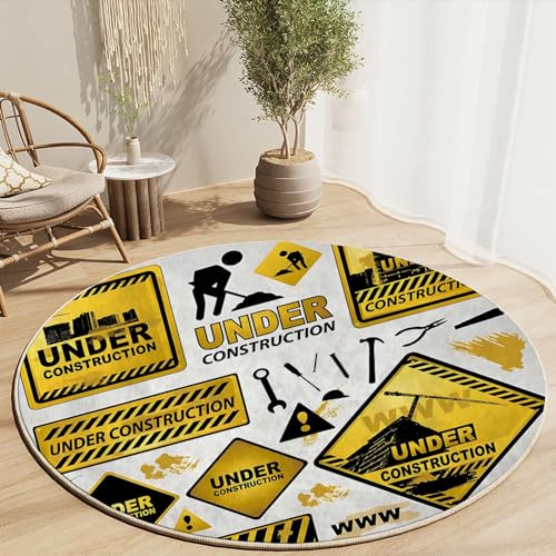 Round Rug 39 in Dog Office Desk Chair Mat Cartoon Heavy Duty Floor Protector Multi-Purpose Low Pile Desk Rug for Home Office