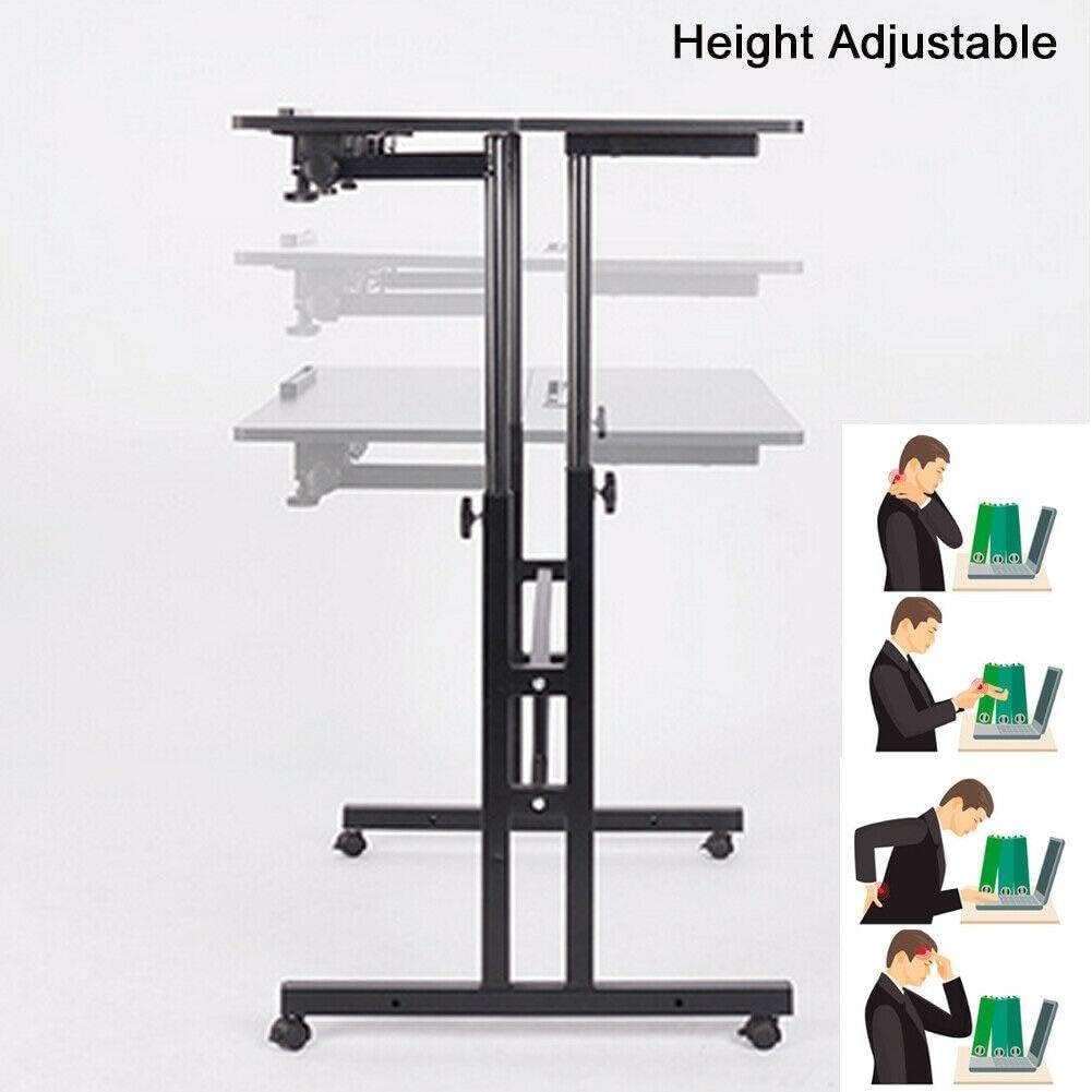 JHUS Rolling Height Adjustable Laptop Desk Table Standing Up Office Workstation Study Home Office Office Furniture Standing Desk Computer Desk Stand up Desk Gaming Desk Standing Desk Office Desk