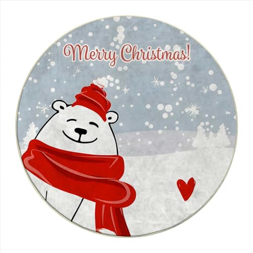 Round Rug 5 FT Christmas Chair Mat for Hard Floors Merry Christmas Premium Floor Protector Mat Anti-Slip Hard Floor Desk Chair Protector for Home Office