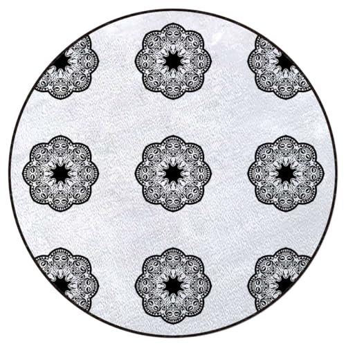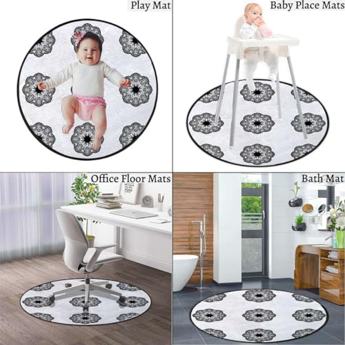 Round Rug 44 in Geometric Office Desk Chair Mat White Black Office Floor Protector Thick and Sturdy Desk Chair mat for Carpets