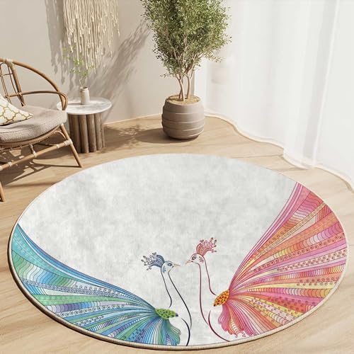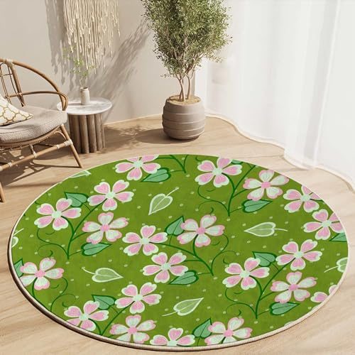 Round Rug 5 FT Floral Office Chair Mat for Carpets Flower Office Gaming Chair Mat Office Chair Mat Protector for Carpeted Floors