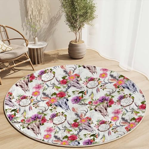Round Rug 44 in Fashion Desk Chair Mat Boho Floor Protectors for Chairs Office Chair Mat with Lip for Carpets