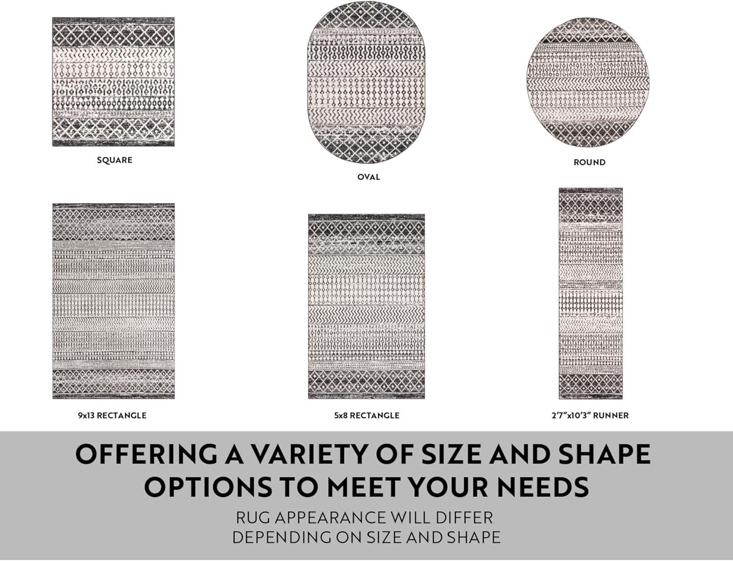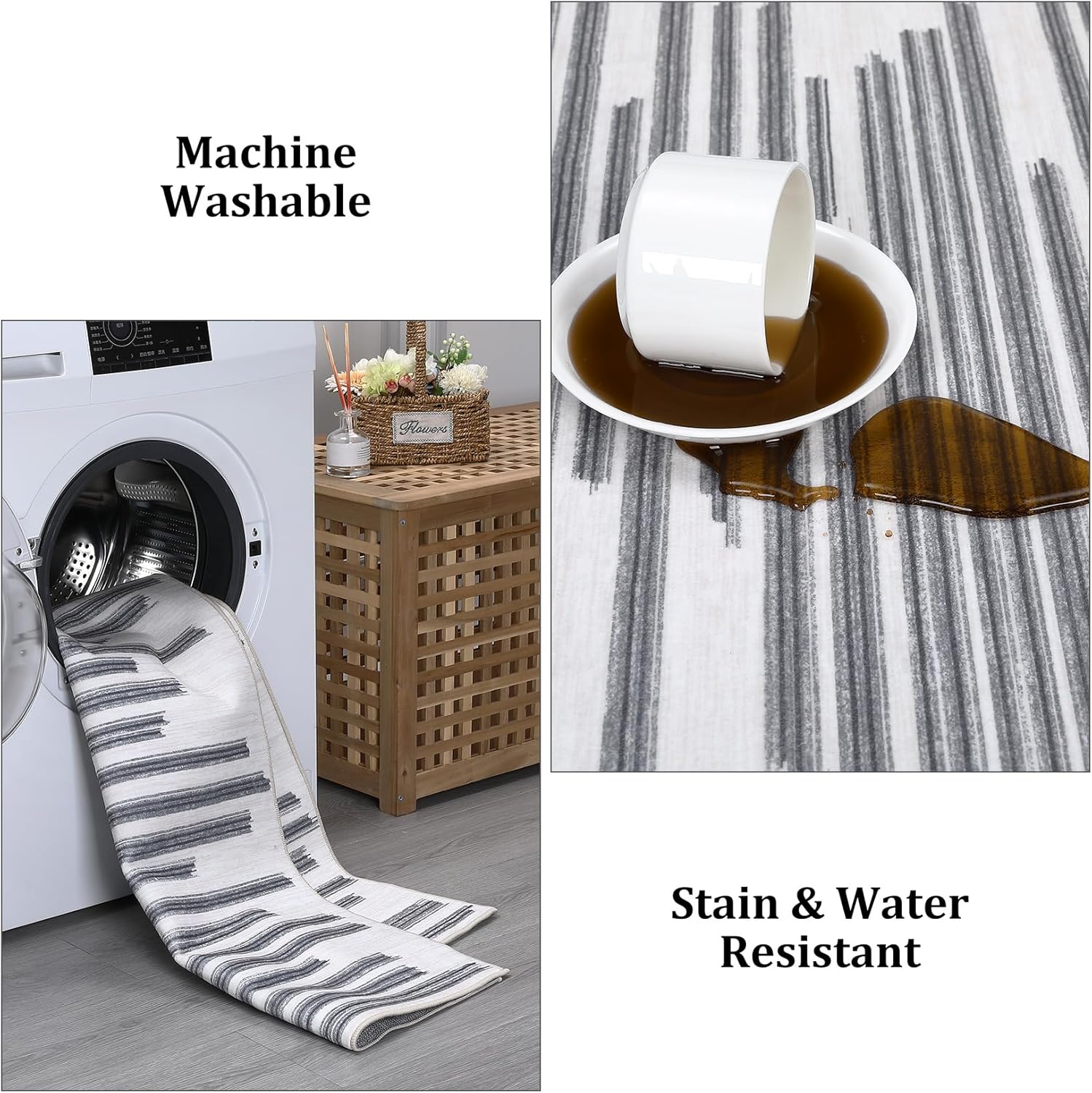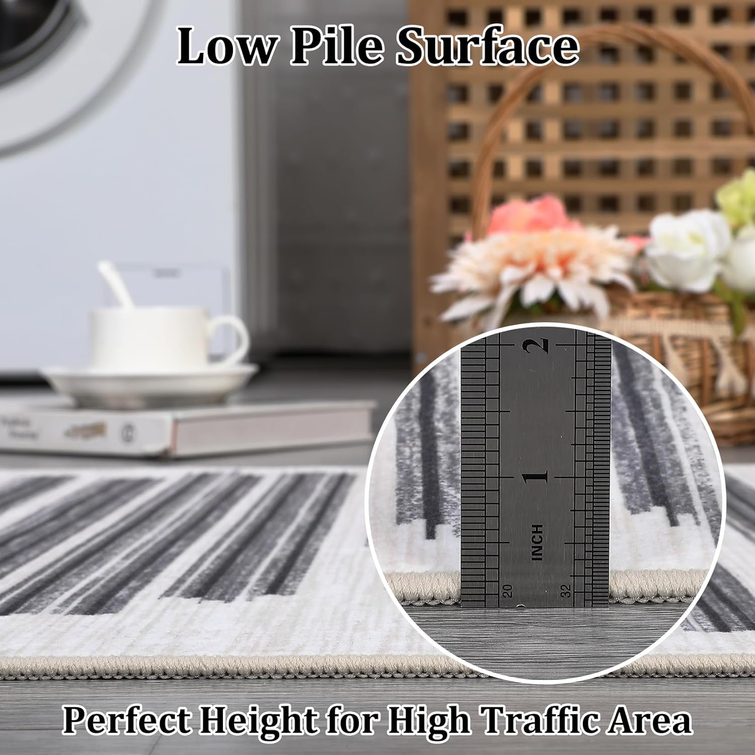 Area Rug 9X12 Modern Berber Stripe Indoor Farmhouse Area-Rug Low Pile Non Slip Throw Rug Machine Washable Rug Stain-Resistant Carpet for Bedroom Living Room, Cream/Grey