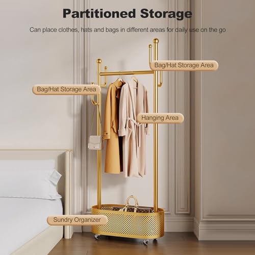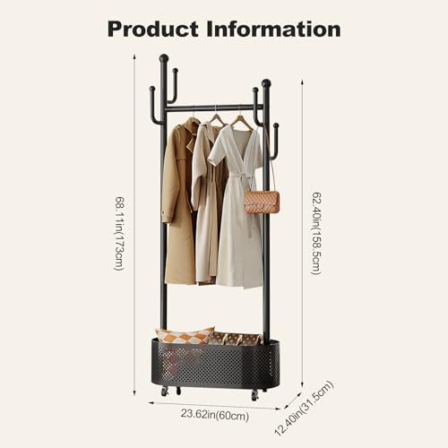 Ergocar Coat Stand. A jacket hat rack with a basket, multi -functional design. It can move stable at 360 °, suitable for placing in bed, living room and porch.