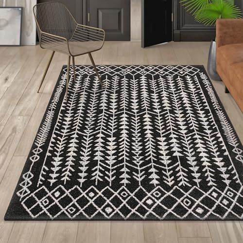 Livabliss Chester Boho Moroccan Area Rug,5'3" x 7'6",Black
