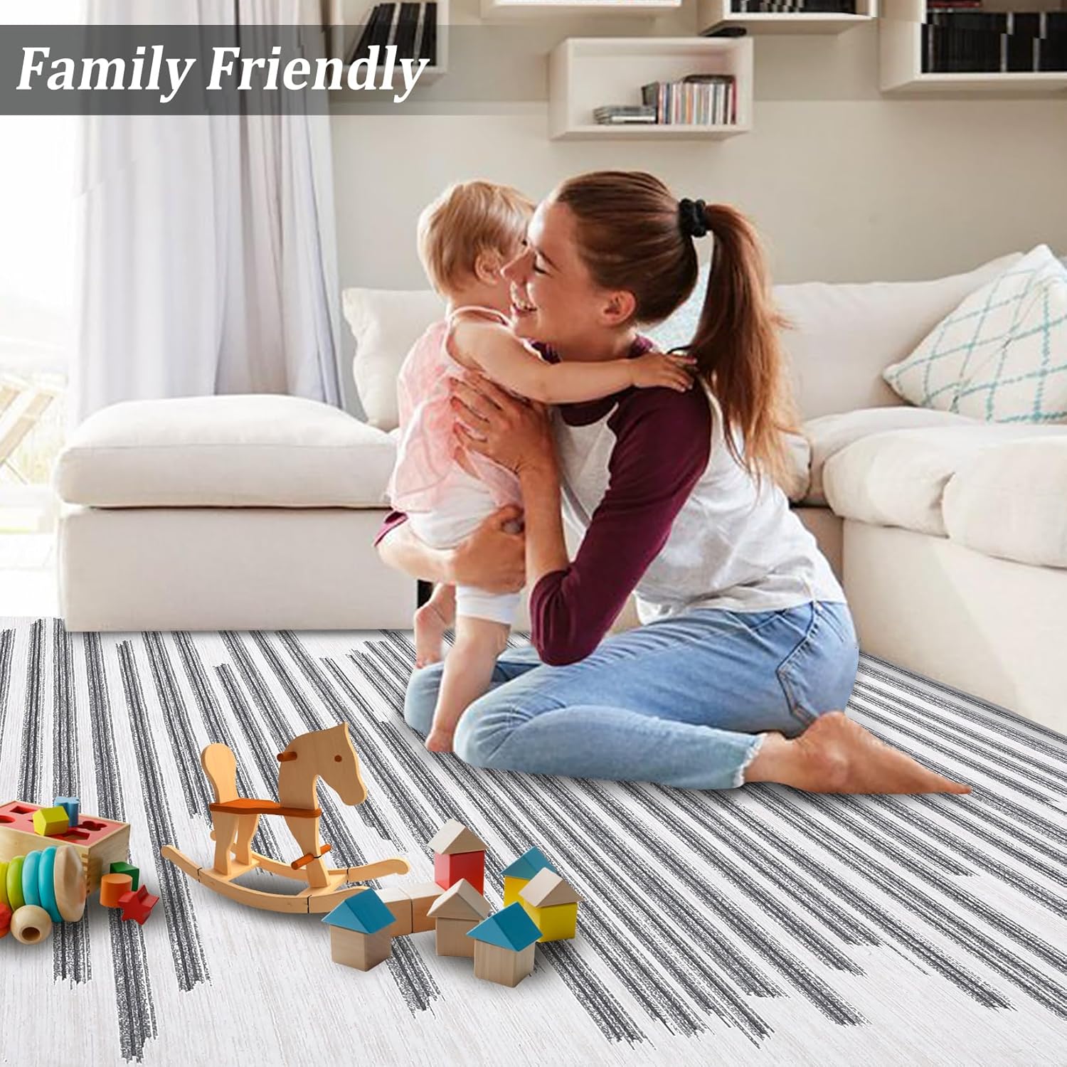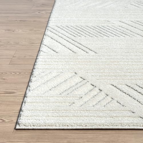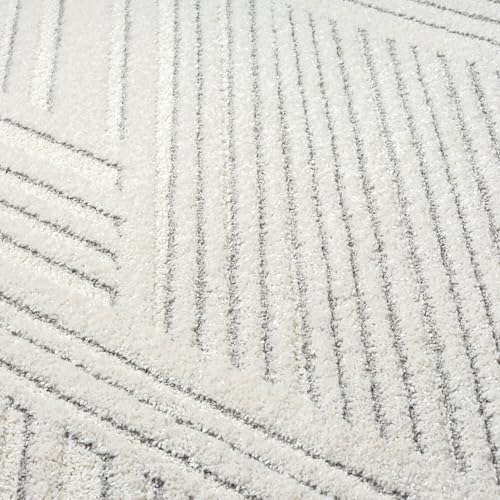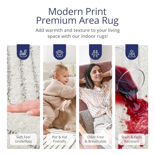 Abani Cozy Cream Area Rug for Living Room, Bedroom - Grey Linear Lines Pattern - 5' x 8' - Durable & Easy to Clean