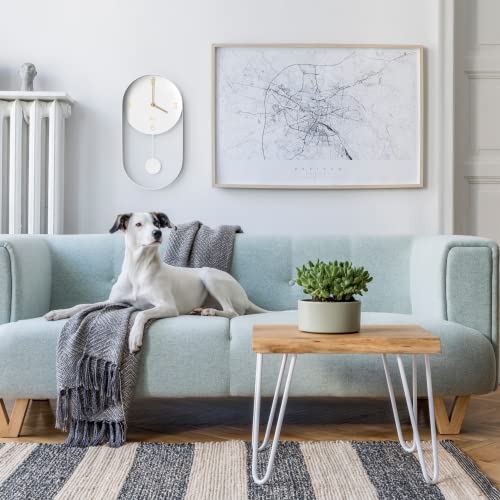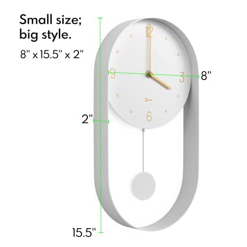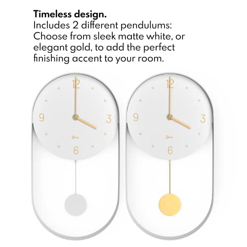 Driini Modern Pendulum Wall Clock - Decorative and Unique Metal Frame, with 8 Inch Face - Contemporary, Minimalist Design, with Silent Battery Operation - includes Both Black and Gold Pendelum