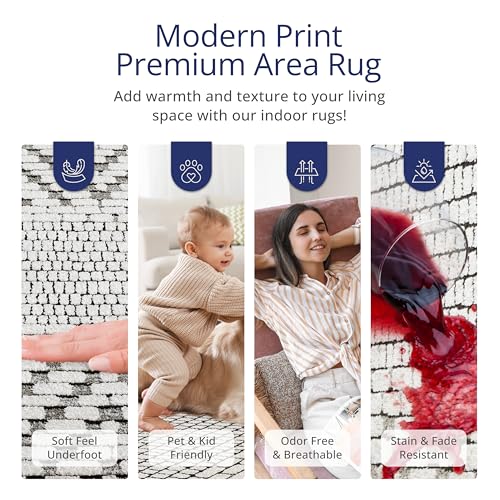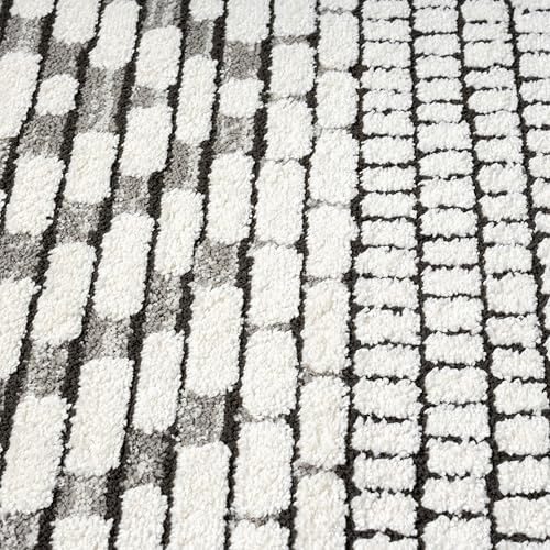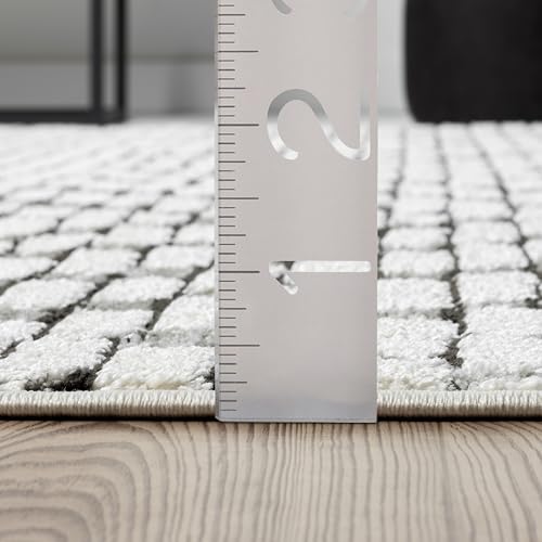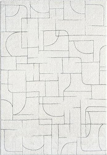 Abani Cozy Cream Area Rug for Living Room, Bedroom - Grey Criss Cross Intertwined Lines Pattern - 5' x 8' - Durable & Easy to Clean