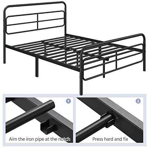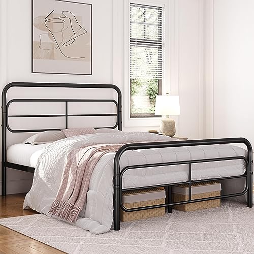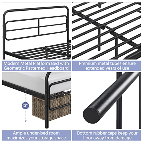 Topeakmart Twin Bed Frames Metal Platform Bed with Modern Geometric Patterned Headboard, Easy Assemble, 13 Inch Underbed Storage, No Box Spring Needed, White