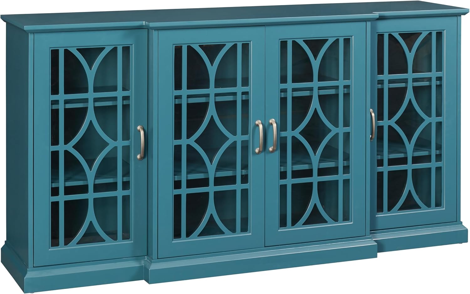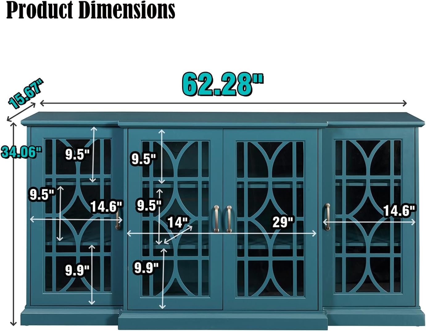 Modern TV Stand Cabinet with Glass Doors for Living Room, 62 Inch Entertainment Center with Storage Shelves