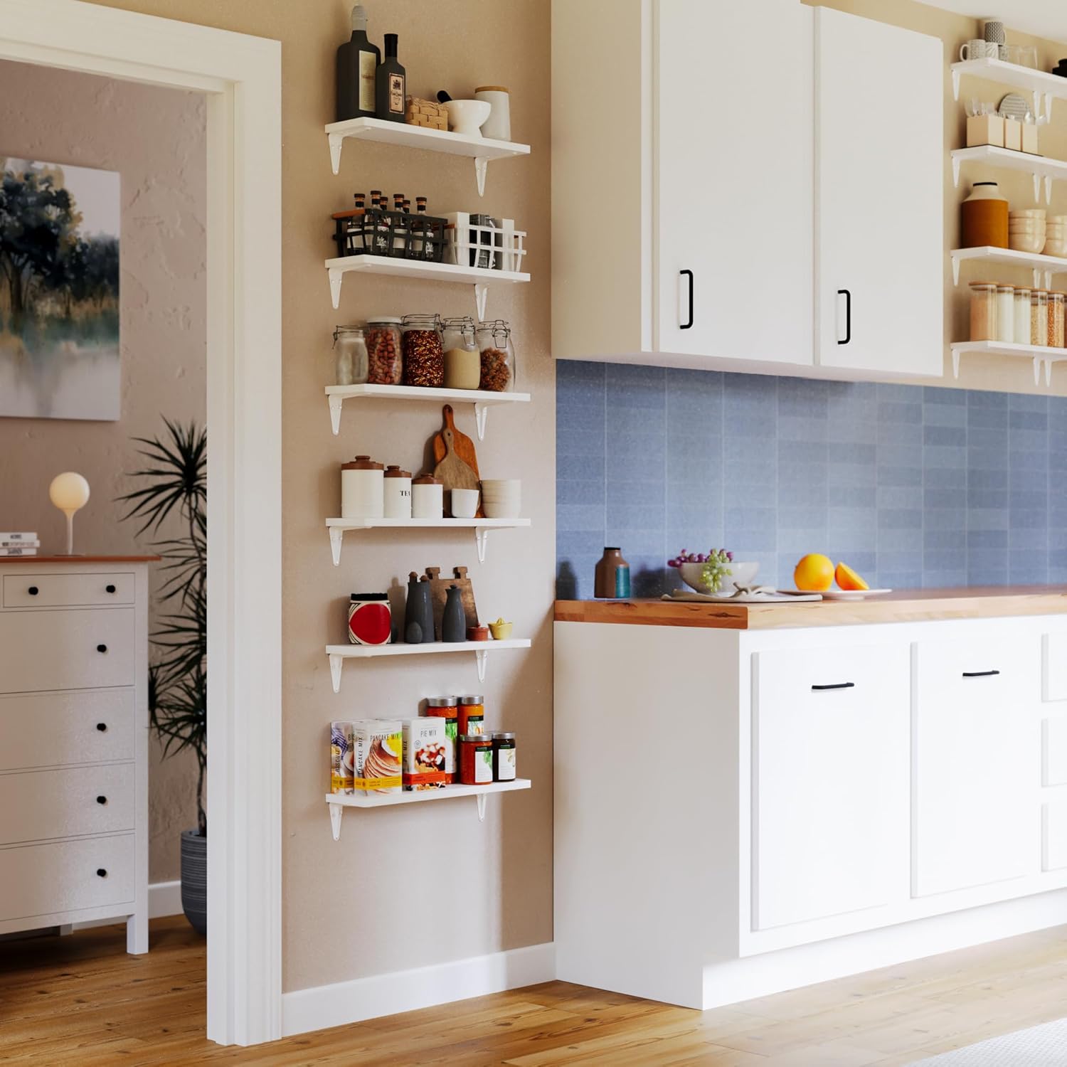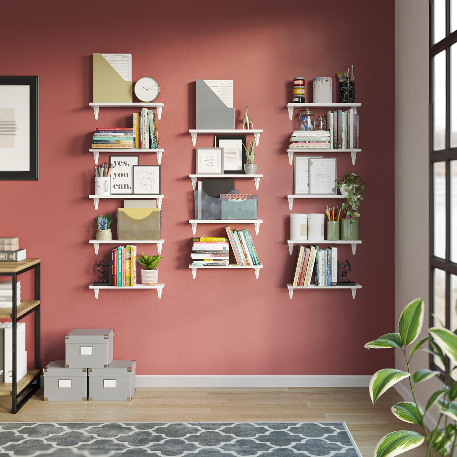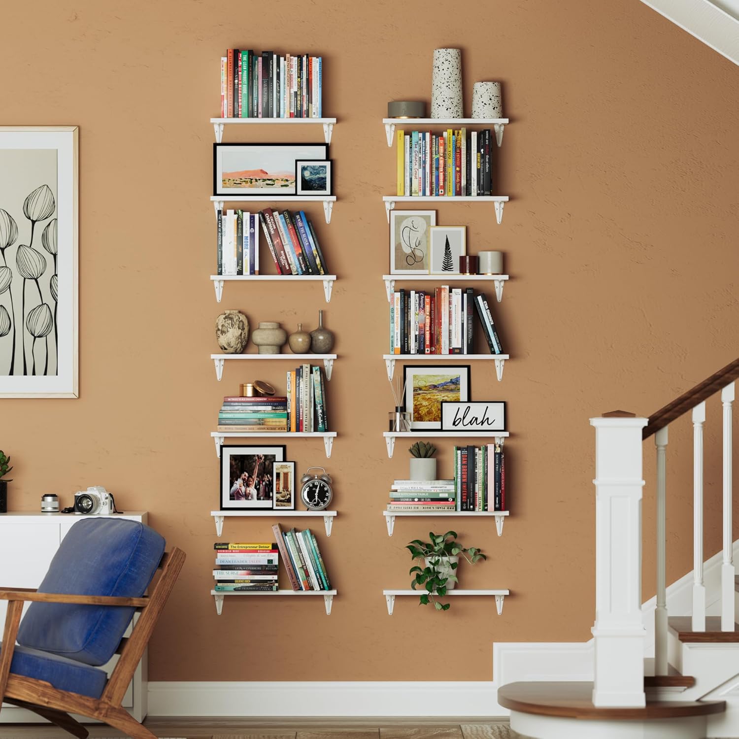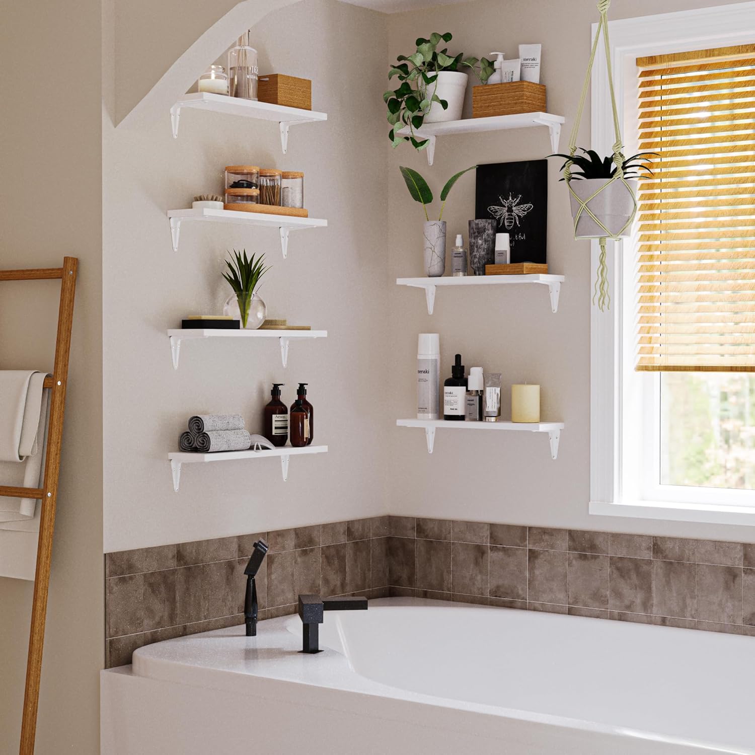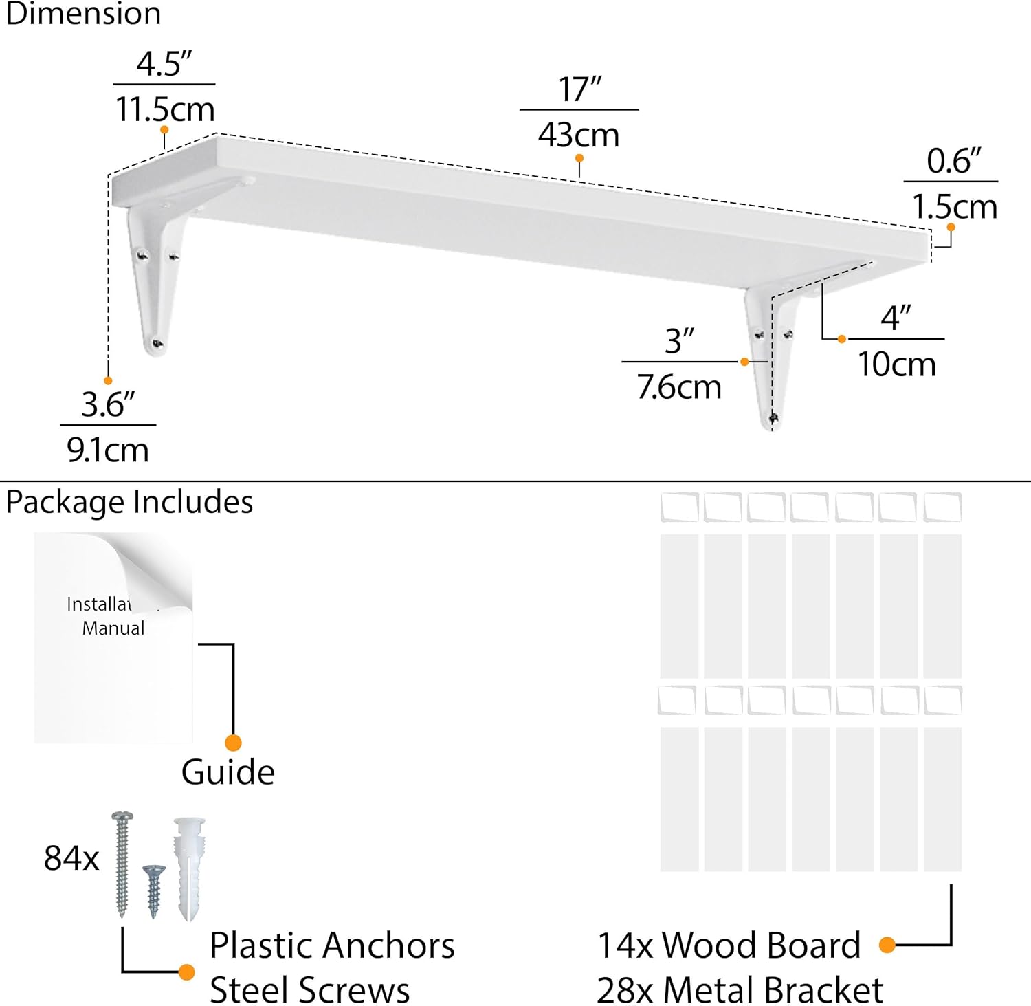 Wallniture Arras 17''x4.5'' Floating Shelves, Wall Bookshelf for Living Room, Kitchen Rustic Wood Shelves, Wall Shelves for Bathroom, Set of 14, White, Wood