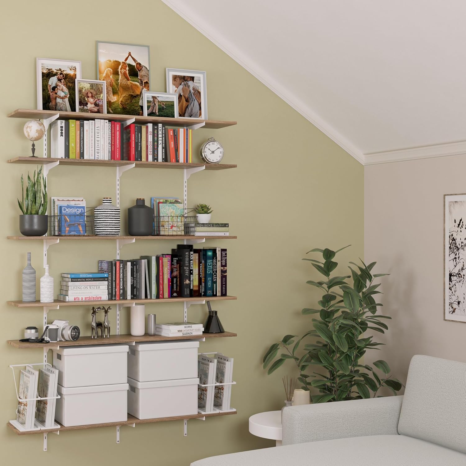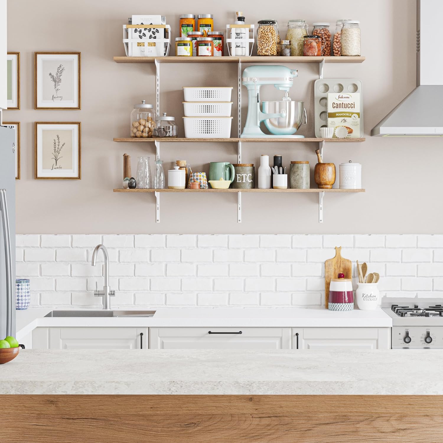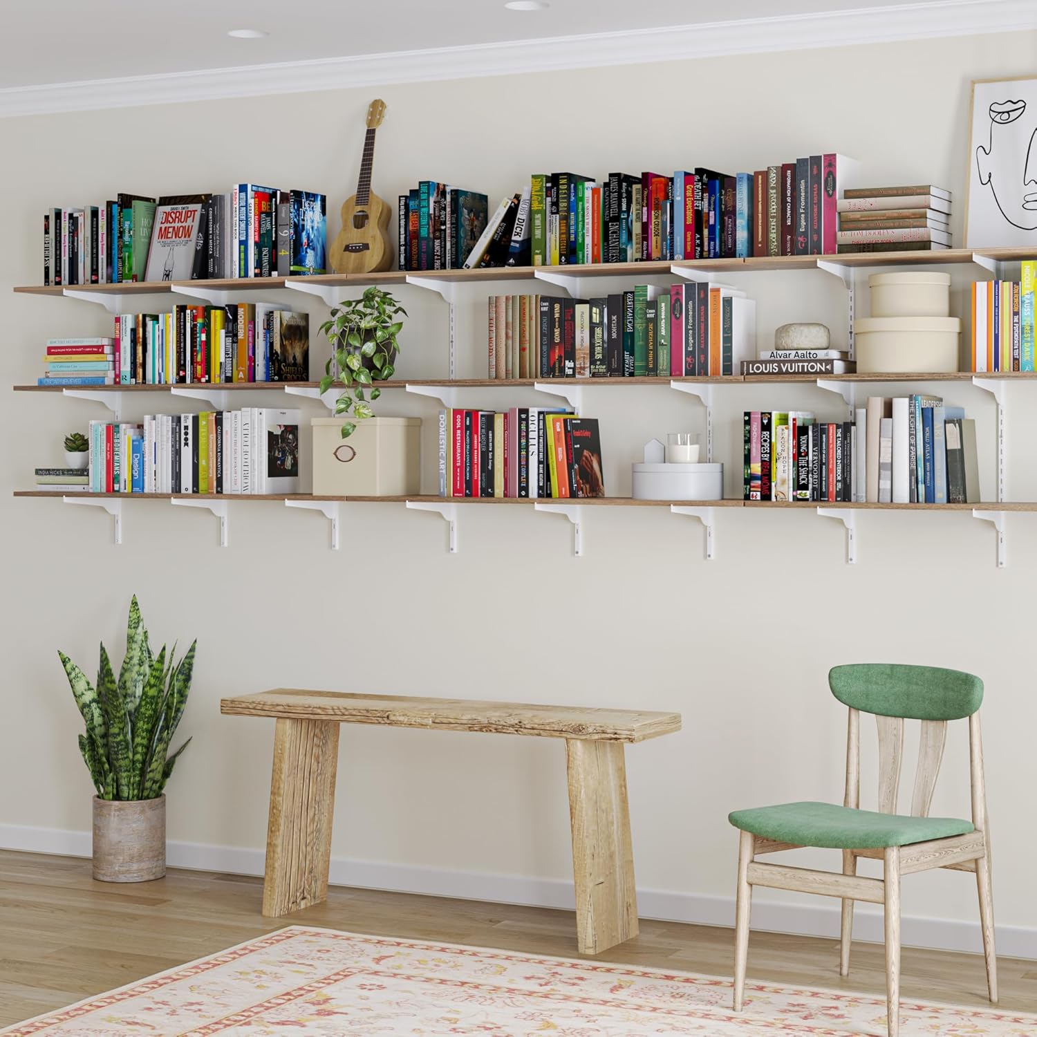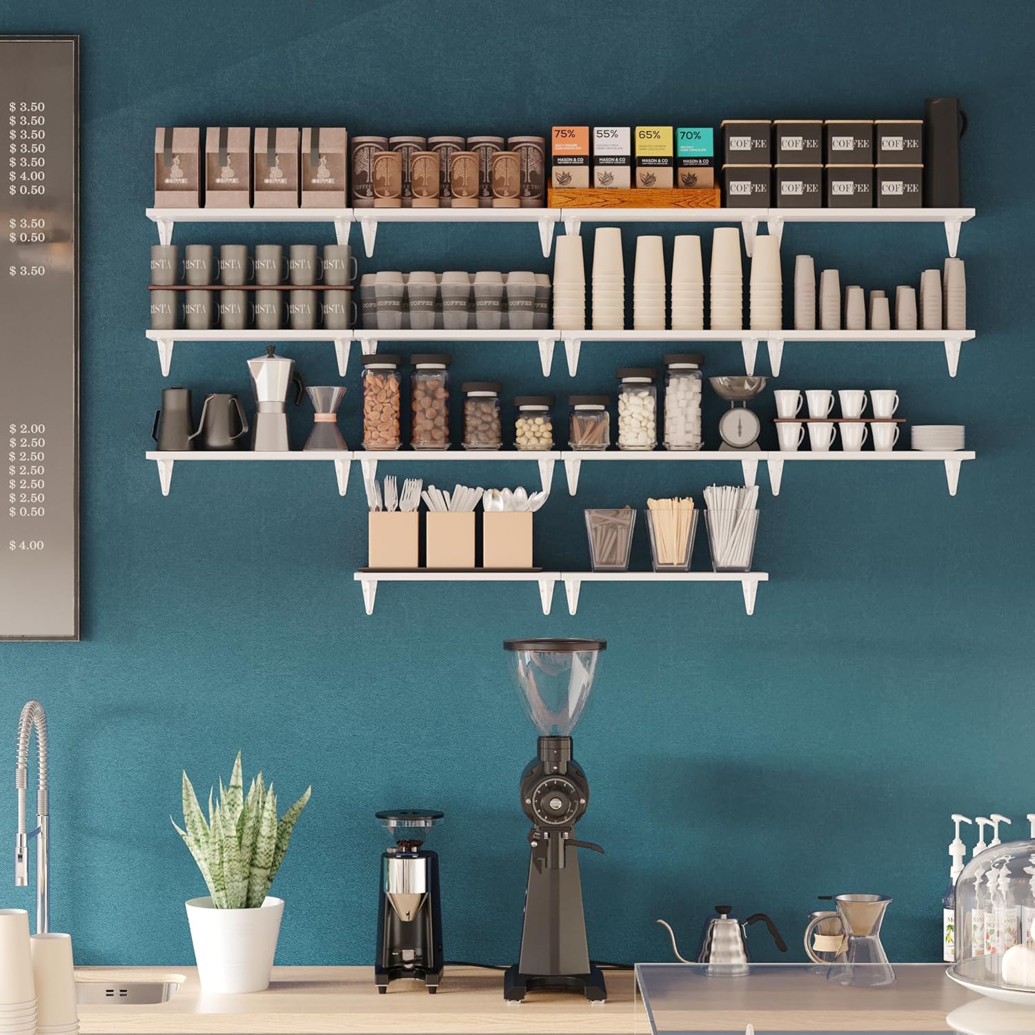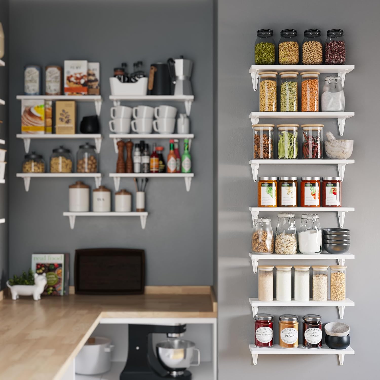 Wallniture Arras 17''x4.5'' Floating Shelves, Wall Bookshelf for Living Room, Kitchen Rustic Wood Shelves, Wall Shelves for Bathroom, Set of 14, White, Wood
