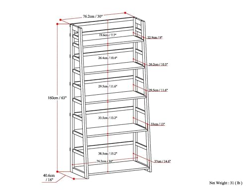 SIMPLIHOME Kitchener SOLID WOOD 30 Inch Contemporary Ladder Shelf in Hickory Brown, For the Living Room, Study Room and Office