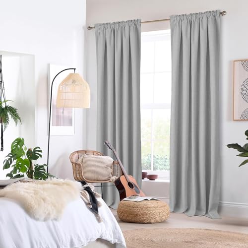 100% Blackout Shield Linen Blackout Curtains 90 Inches Long 2 Panels Set, Blackout Curtains for Bedroom/Living Room, Thermal Insulated Rod Pocket Window Curtains & Drapes, 50W X 90L, Butter Cream