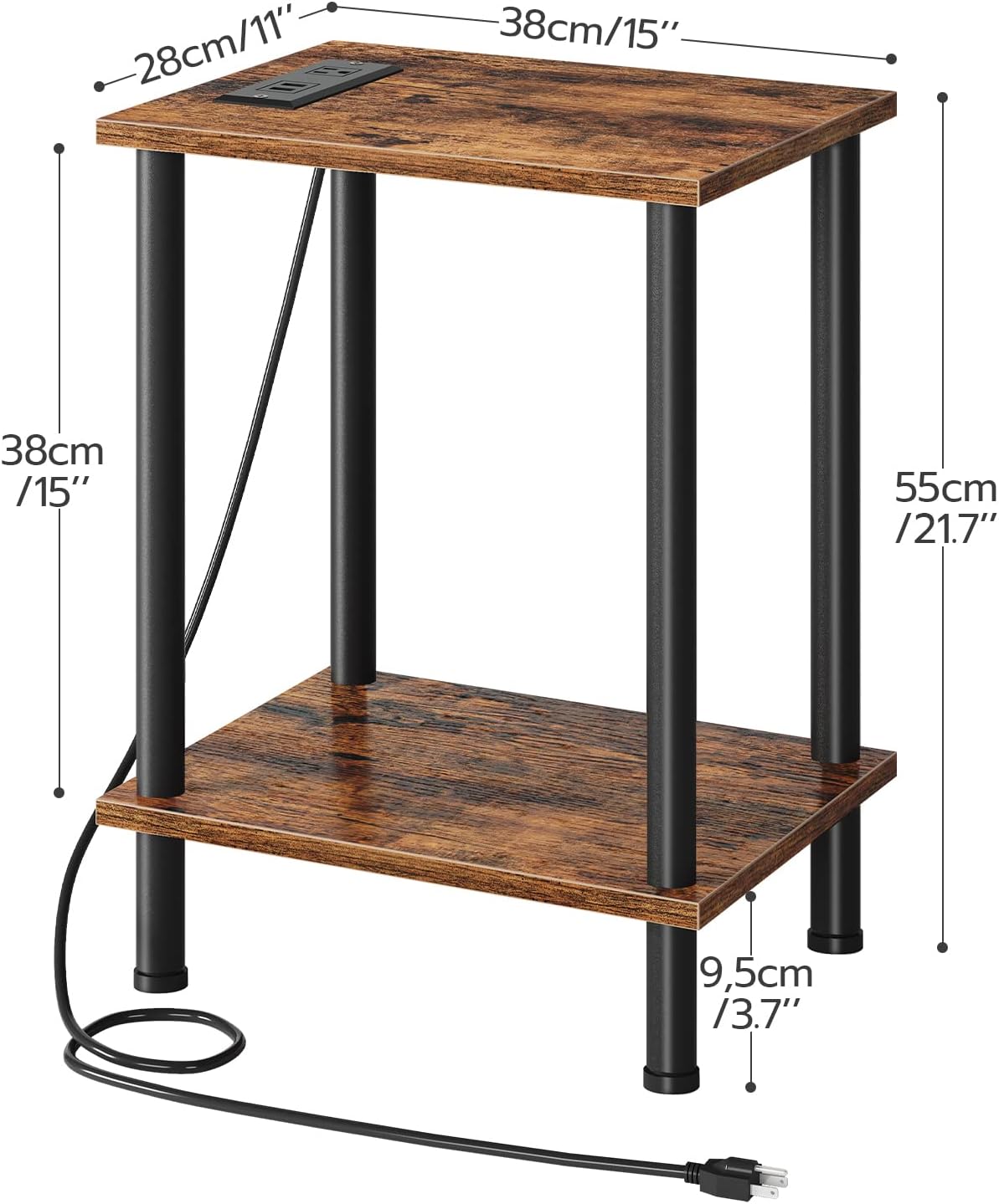 HOOBRO Side/End Tables with Charging Station Set of 2 and LED End Tables Set of 2 Bundle, Small table for Small Space in Living Room, Bedroom, BF09UBZP201-BF112UDBZP201