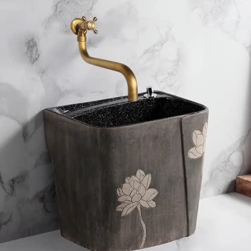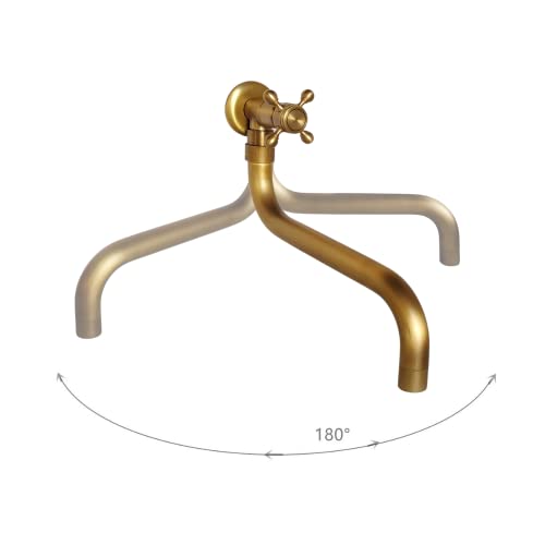 Antique Wall Mounted Single Faucet, Modern Swivel Brass Cold Water Tap Kitchen Sink Faucet, Cross Handle Longer Garden Vintage Faucets G1/2 (Long 10.82 in)