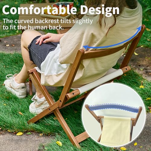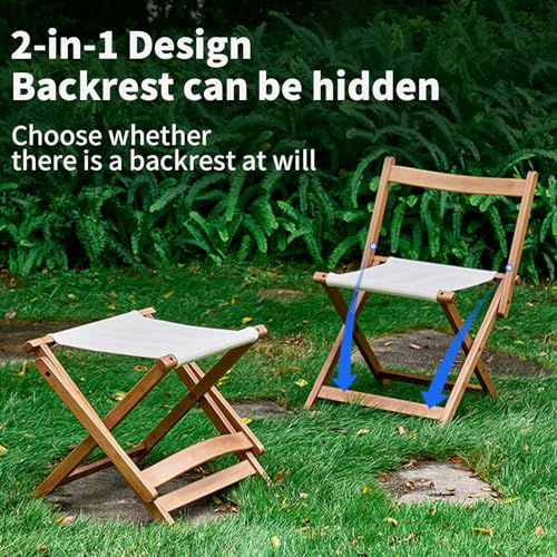 HYNAWIN Foldable Camping Chair Portable Stool for Indoor and Outdoor Use Bamboo Chair with Canvas Seat Surface Folding Chair for Camping, Garden, Patio, and Backyard