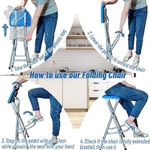 Be&xn Folding Bar Stool, Tall Collapsible Stool Counter Height Folding Stools for Adults Portable, Plastic Barstool Chair for Adults Kitchen Island Guitar (blue, H72xW31cm(28x12inch))