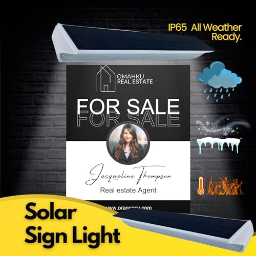 Top of Sign Outdoor Commercial Solar Signage LED Light Auto On Off Lamp to Illuminate the House Number Billboard Marquee Solar Powered Waterproof Spotlight for Real Estate Church sign 13"
