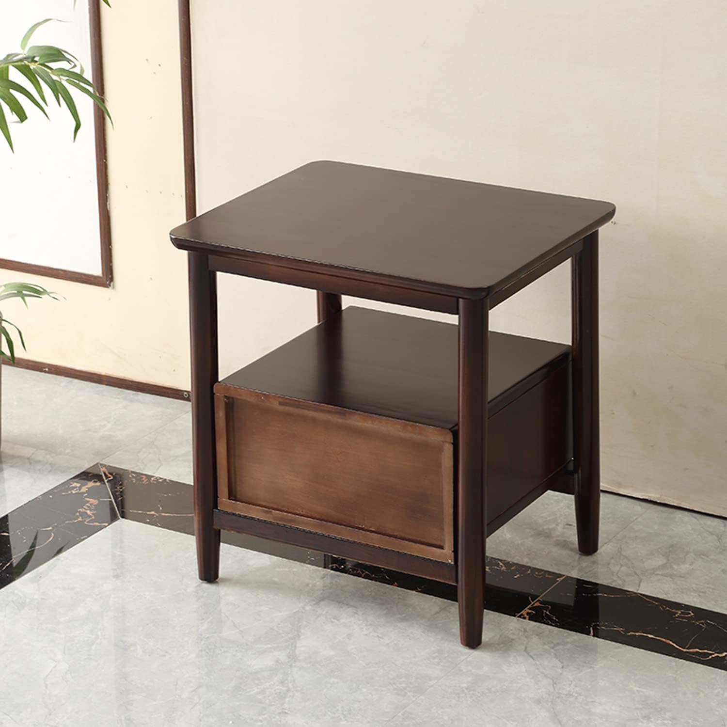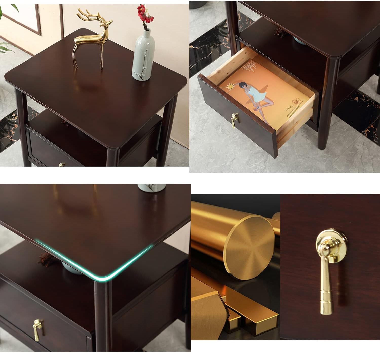 Light Luxury Nightstand, Minimalist Bedside Table with Drawer and Open Platform, Solid Wood Night Stands Side Table, Storage Cabinet Corner Tables Bedroom Furniture
