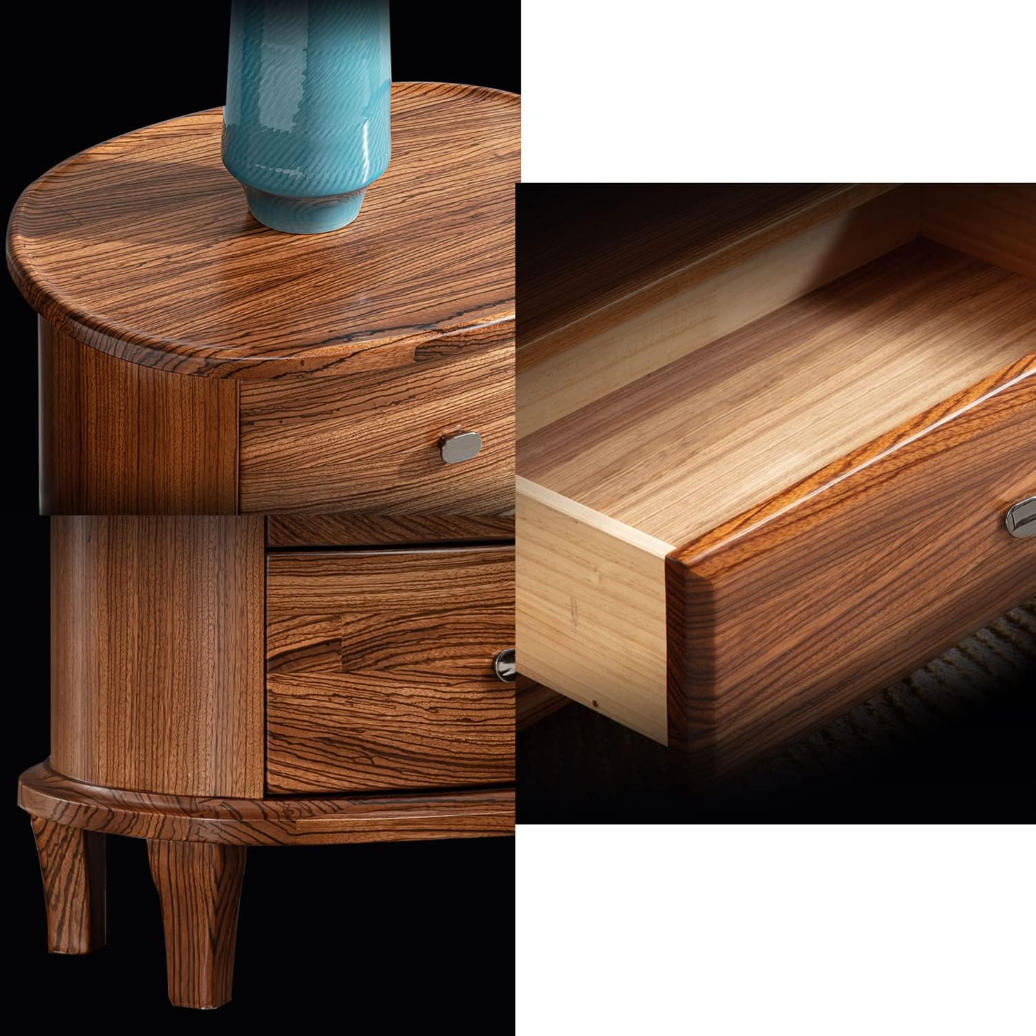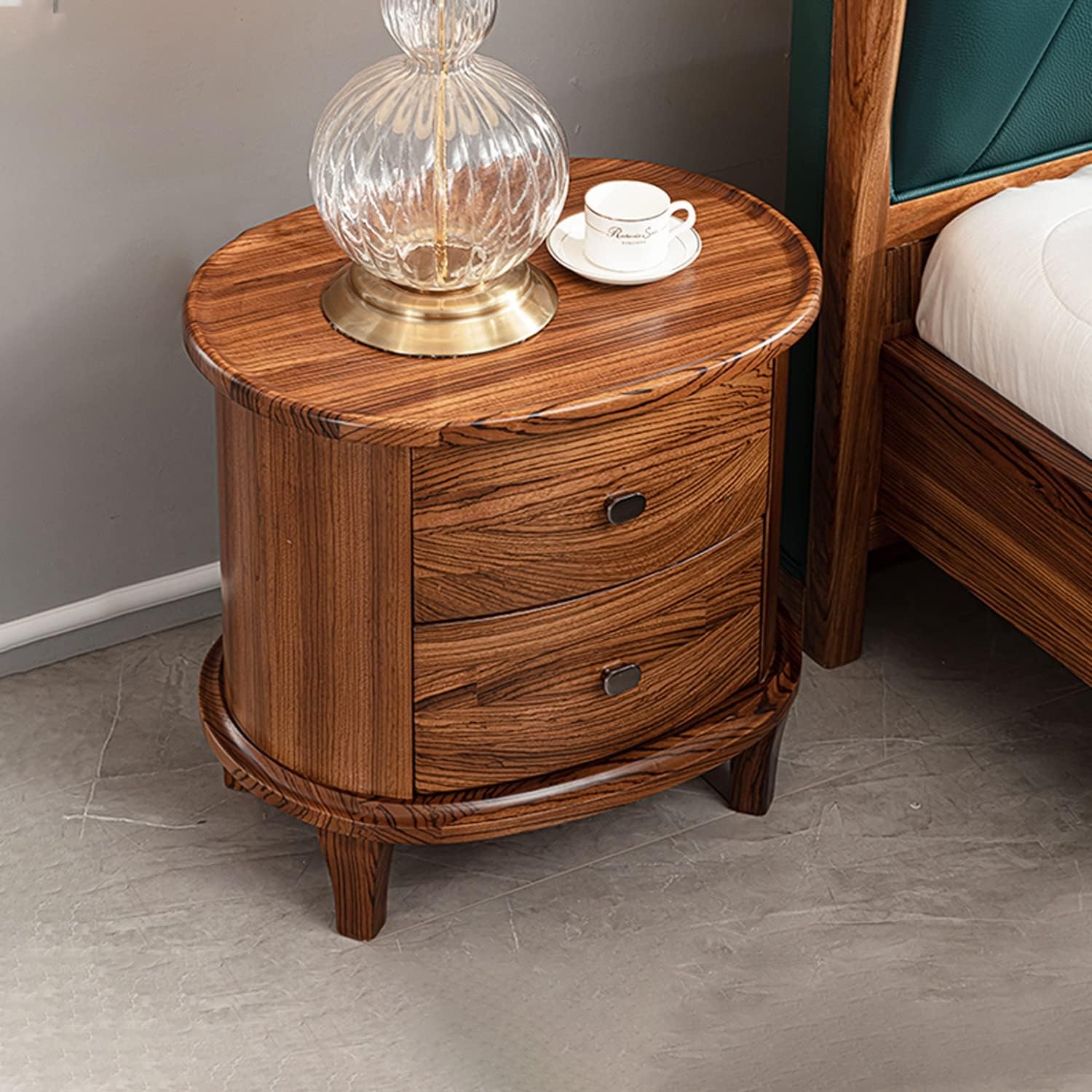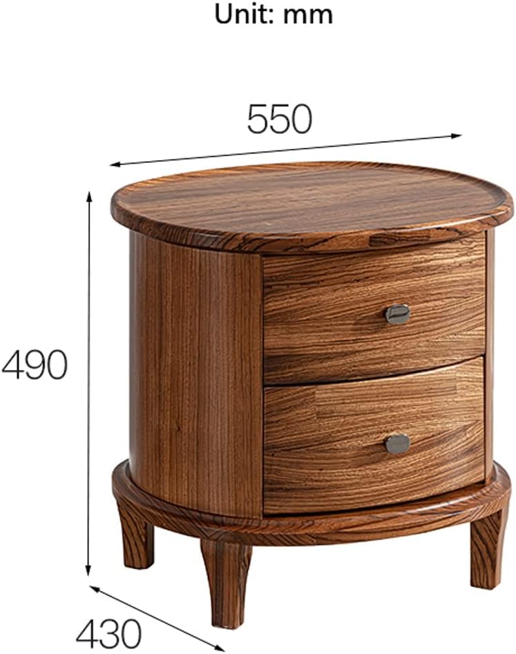Light Luxury Nightstand, Round Bedside Table with 2 Drawer, Solid Wood Storage Cabinet Side Table, Night Stands for Living Room Bedroom Furniture