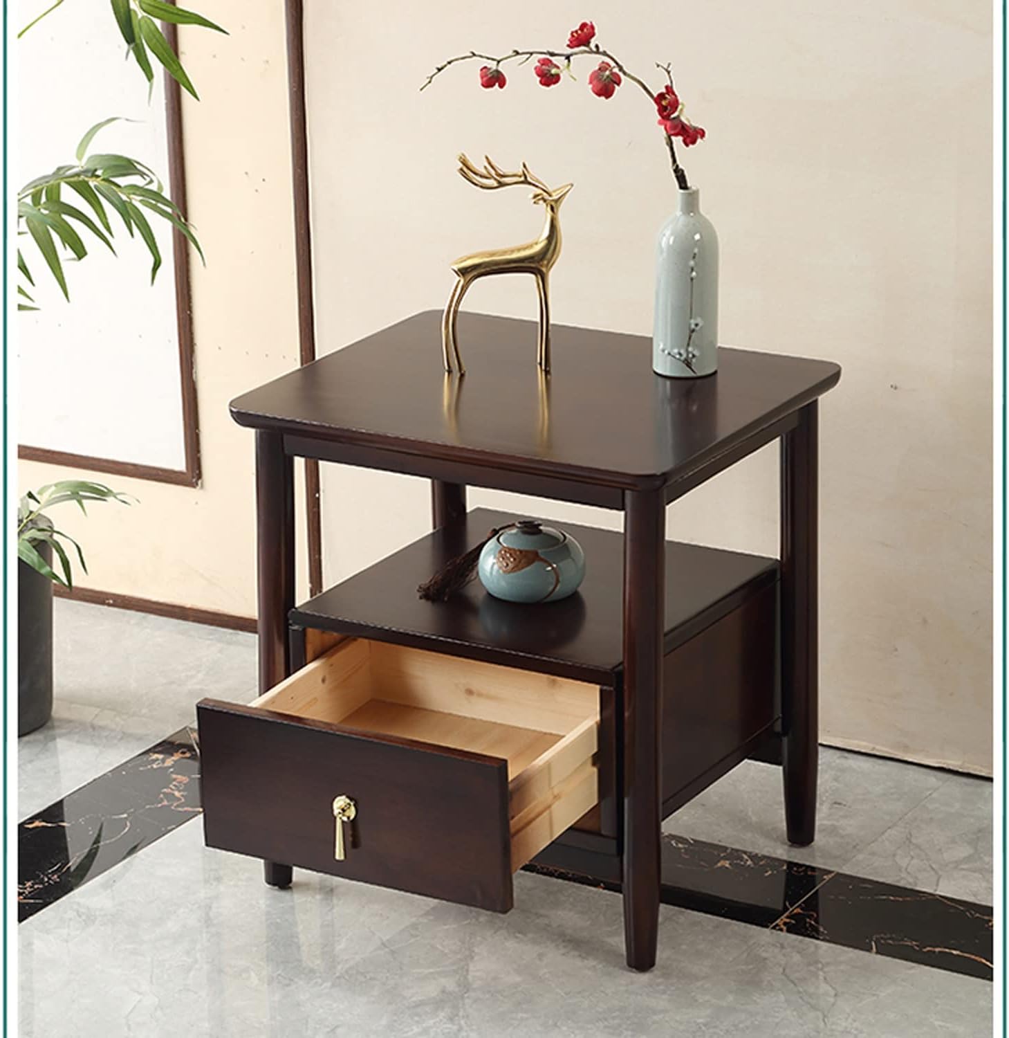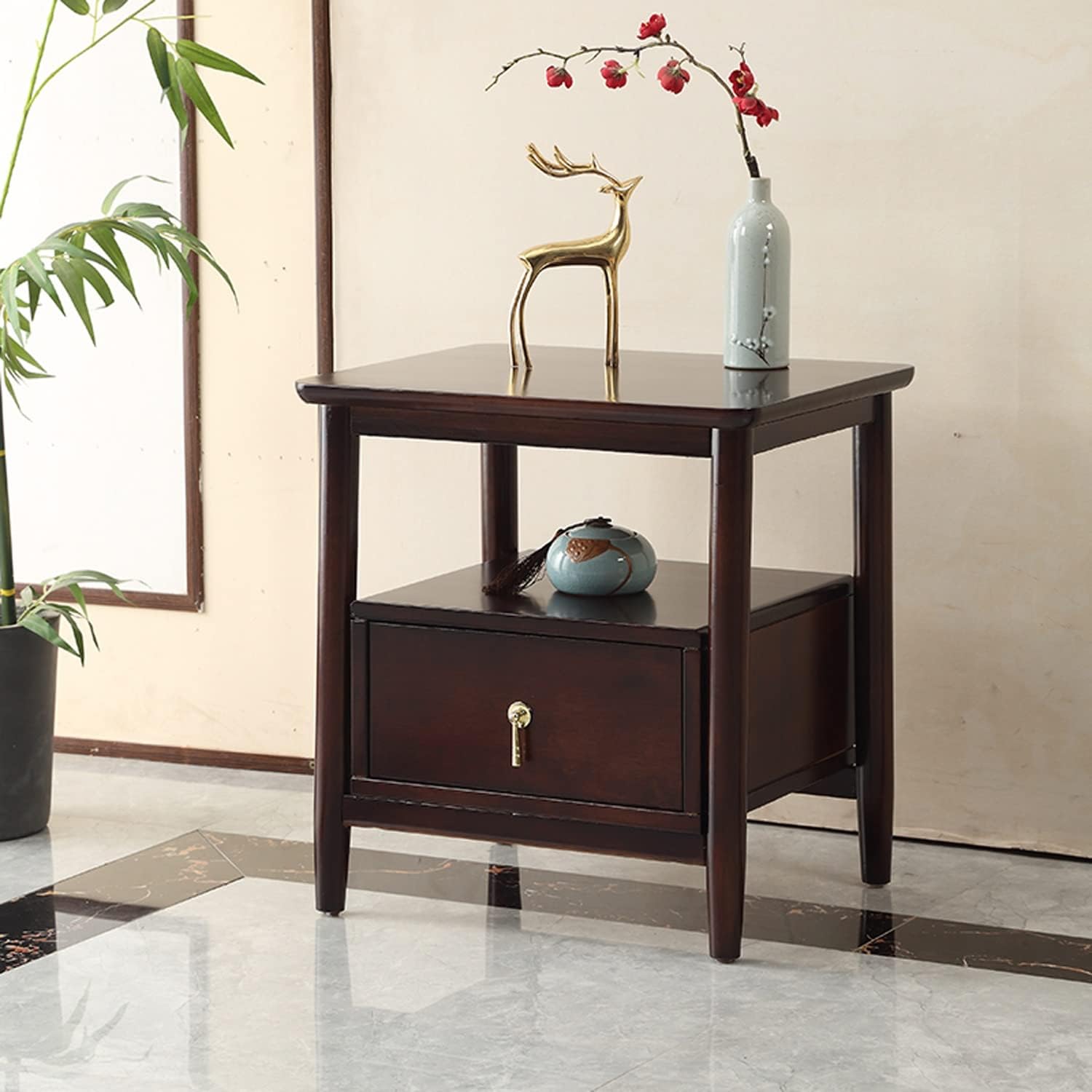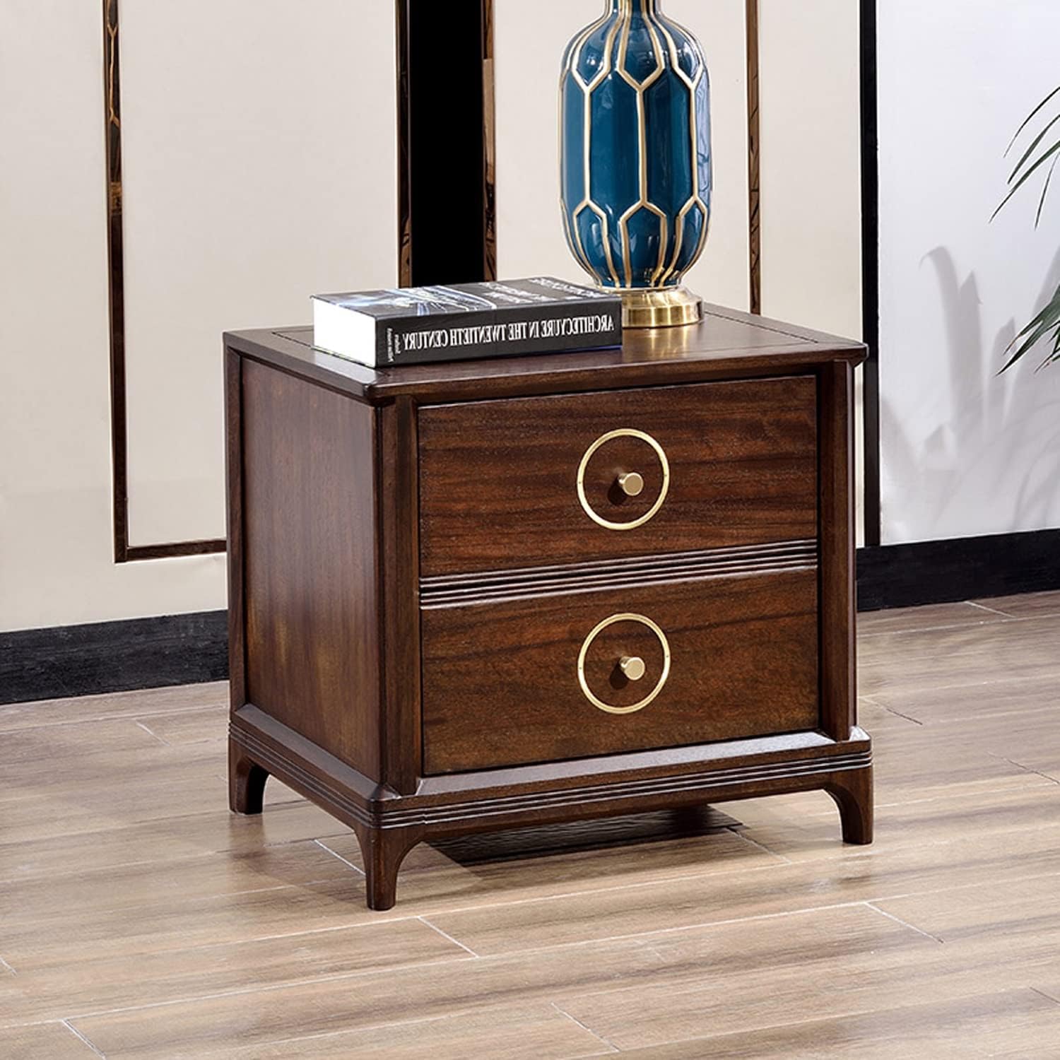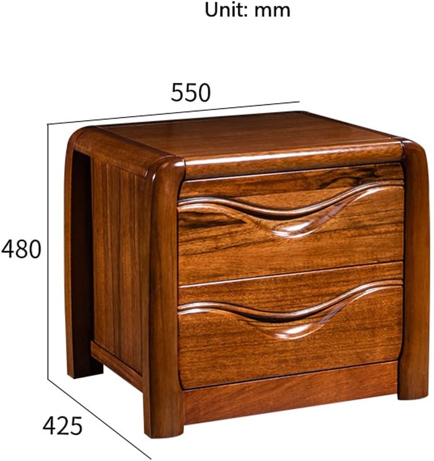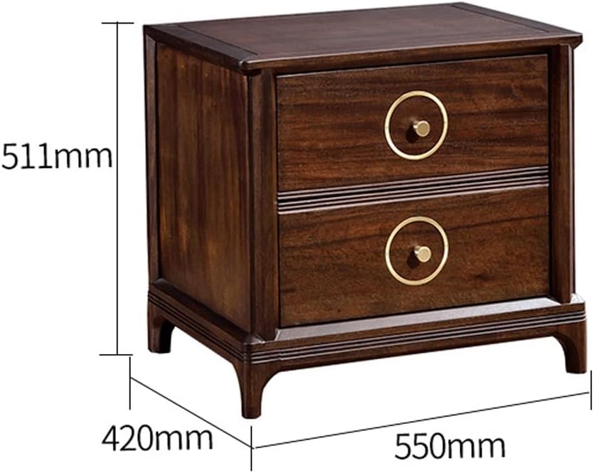 Light Luxury Nightstand, Chinese Style Bedside Table with 2 Drawer, Solid Wood Storage Cabinet, Night Stands Side Tables for Living Room Bedroom Furniture