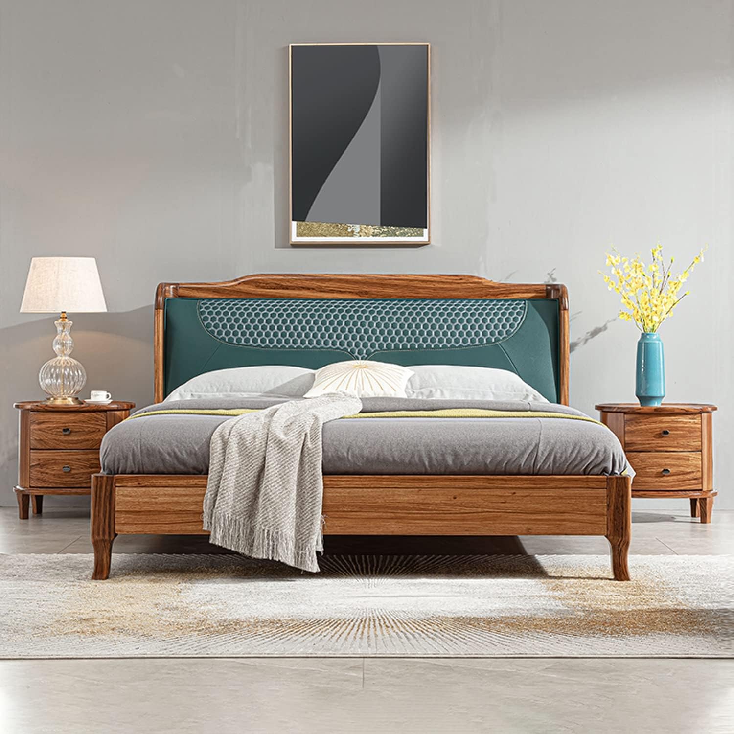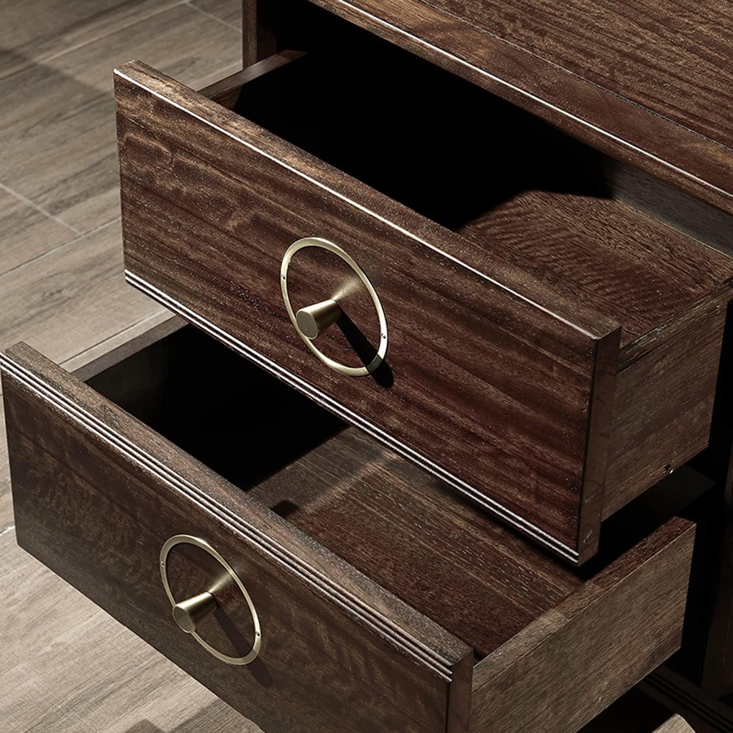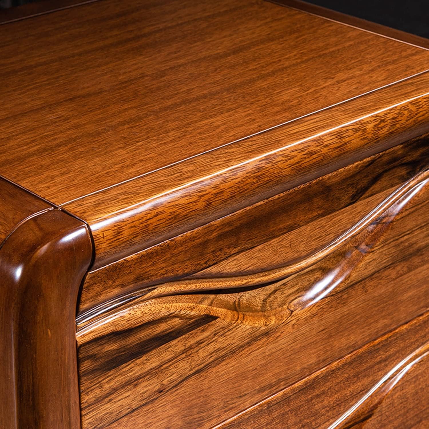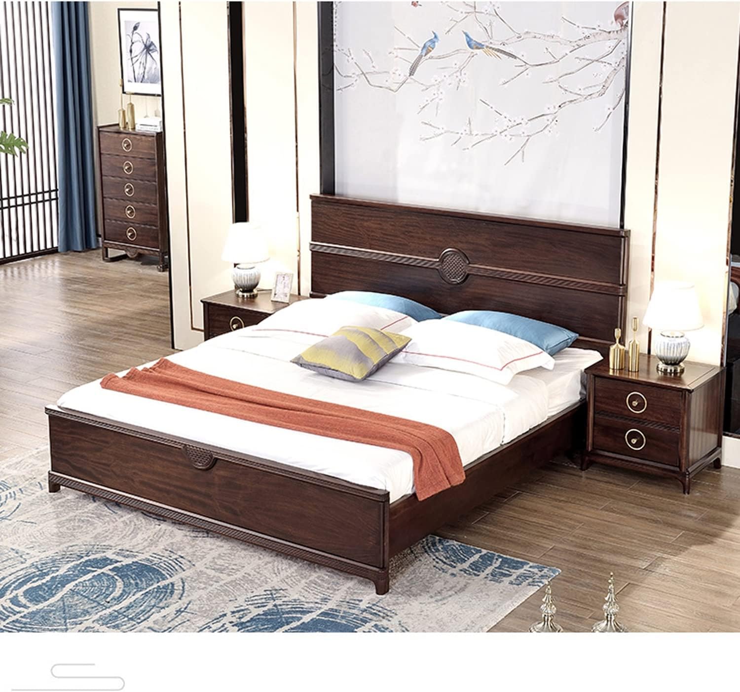Light Luxury Nightstand, Chinese Style Bedside Table with 2 Drawer, Solid Wood Storage Cabinet, Night Stands Side Tables for Living Room Bedroom Furniture
