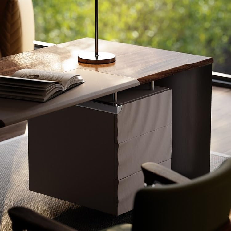 FEELIN Computer Desk Standing Desk Walnut Desk, Company Boss Office Desk, Elegant Chairman Desk, Study Room with Modern Light Luxury Desk Home Office Desk Gaming Desk