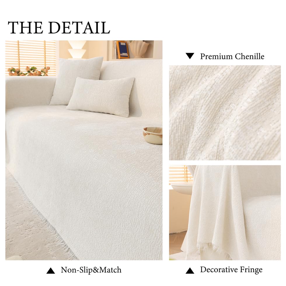 AMWAN Luxury Chenille Couch Cover for Living Room Creamy Beige Sofa Cover for L Shape,Sectional Sofa,Durable Soft Slipcover for Dogs,Cats 1 Piece Universal Furniture Protector Cover, 71x118