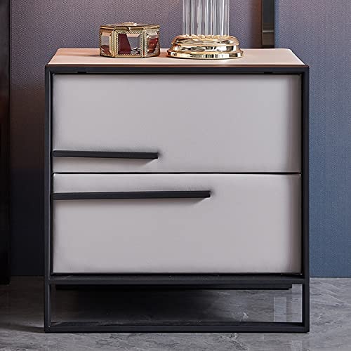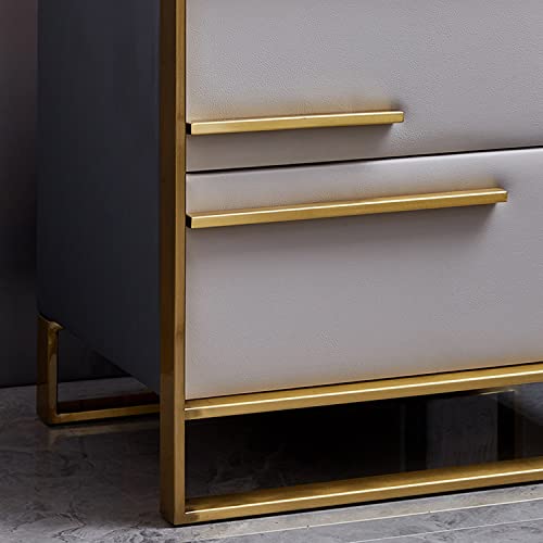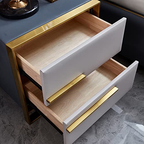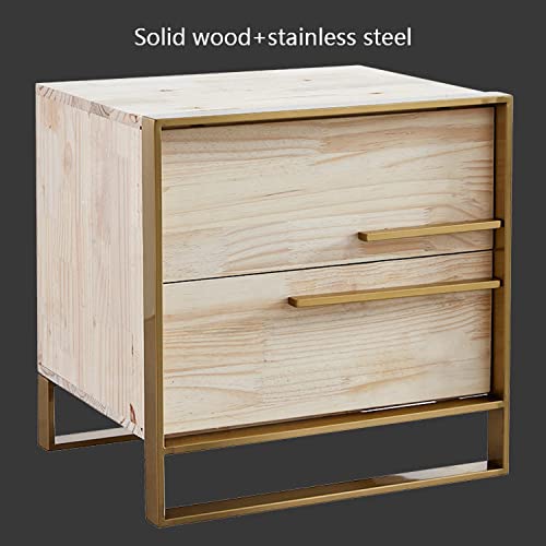 Light Luxury Nightstand, Fashion Bedroom Nightstands with 2 Drawer, Solid Wood Storage Cabinet Stainless Steel Frame, Bedside Tables Furniture for Home Bedroom (Color : A)