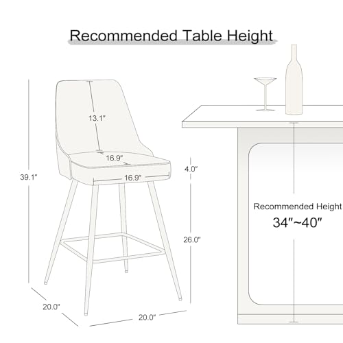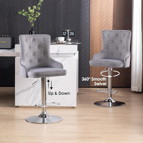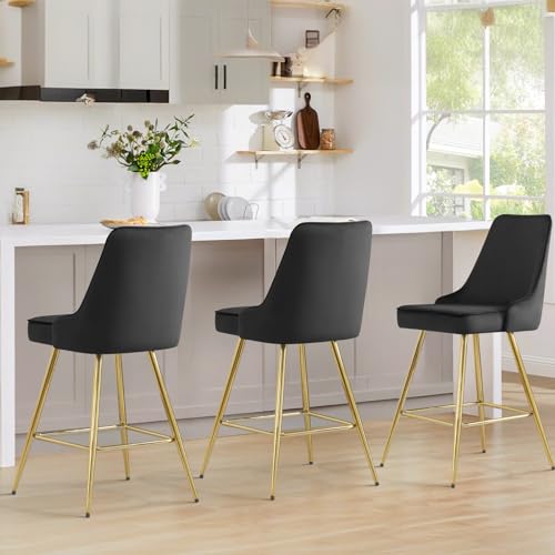 KithKasa Gray Velvet Counter Chairs Sets of 2, Modern Luxury 26 Inch Barstools with Golden Metal Legs Comfy Upholstered for Bar,Kitchen Island,Dining Room