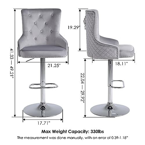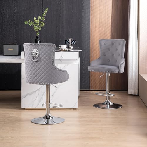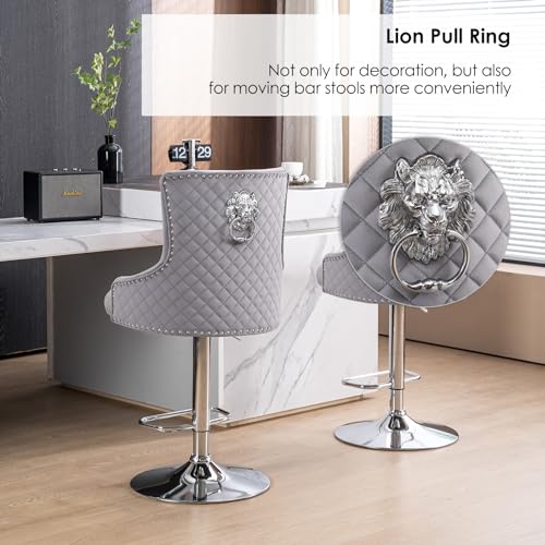 Velvet Bar Stools Set of 2 Modern Counter Height Bar Stools with Lion Pull Ring Tufted Back, Nailhead Upholstered Barstools for Home Kitchen Island, Swivel Adjustable Stool Chair in Black