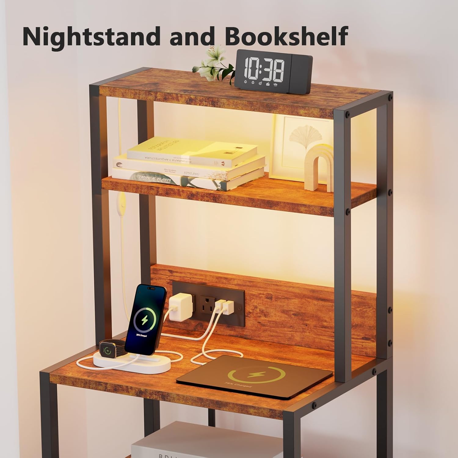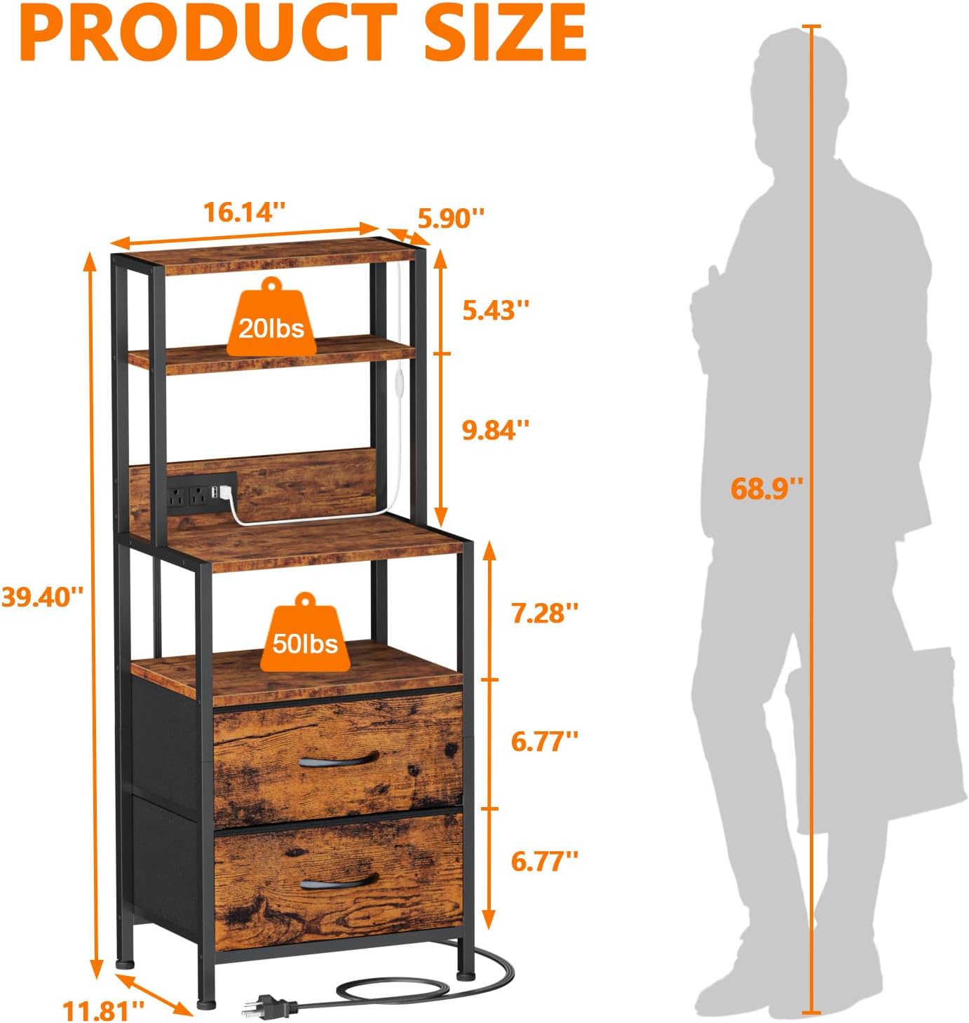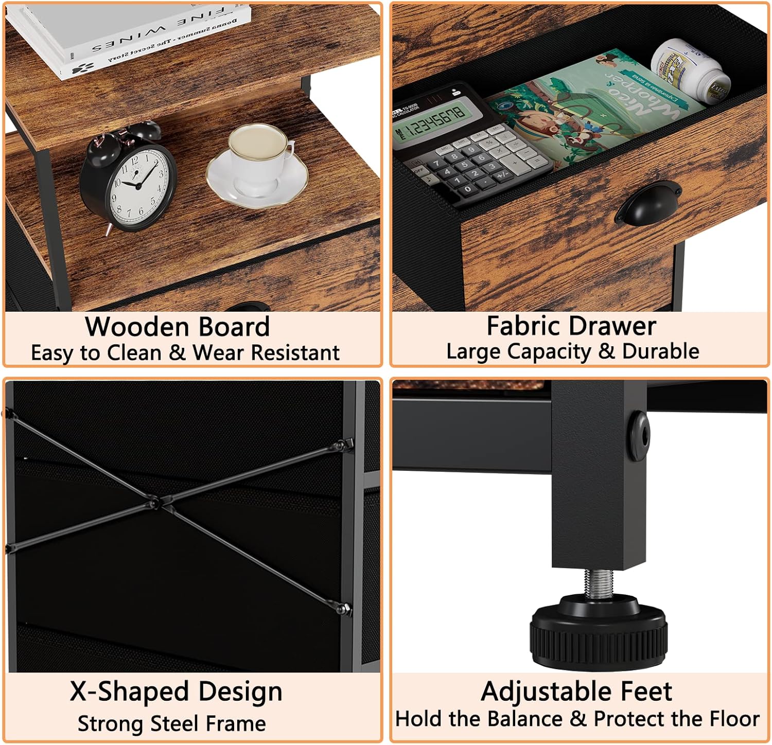 Furnulem Night Stand for Bedroom, Vertical Storage Tower Fabric Dresser Entryway, Nursery, Closet Organizer, Nightstand Bedside Table for Bedroom Living Room, Dorm, Rustic Brown
