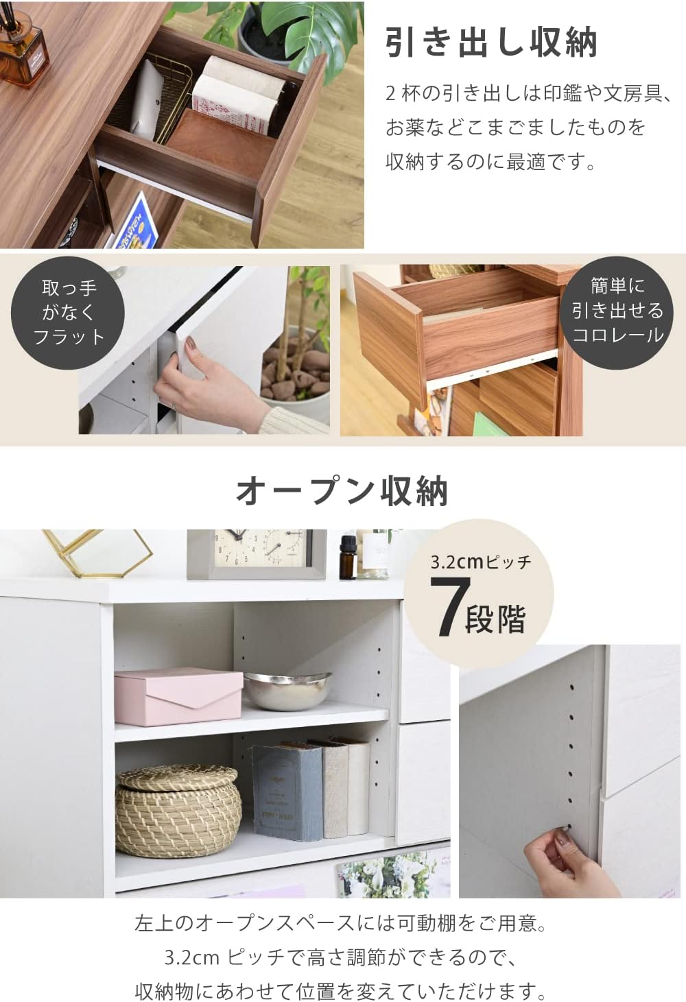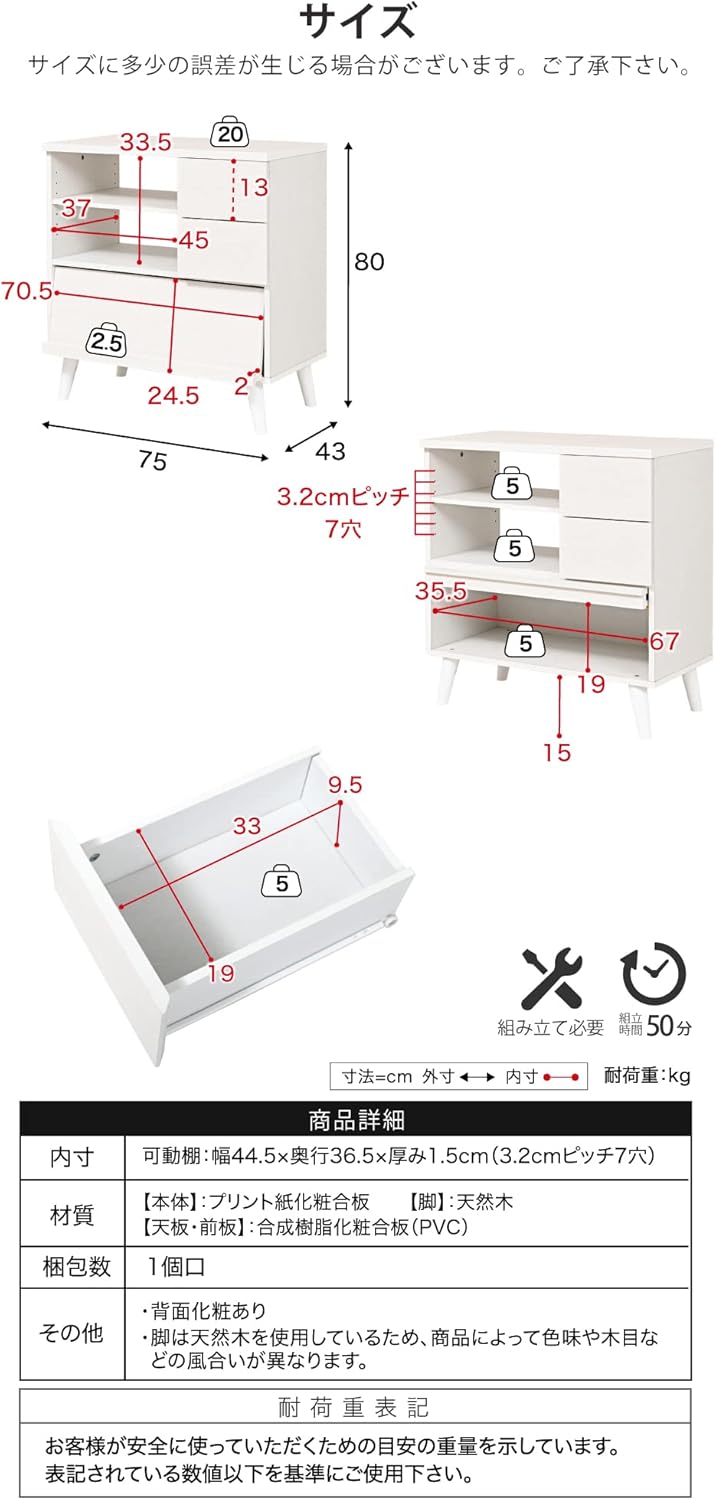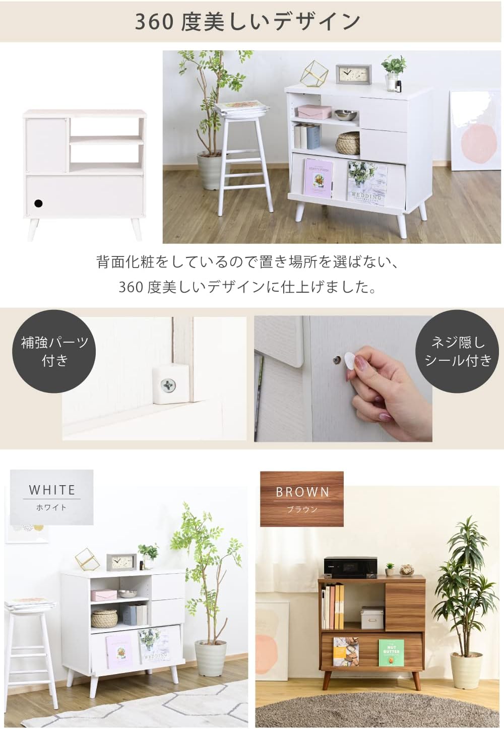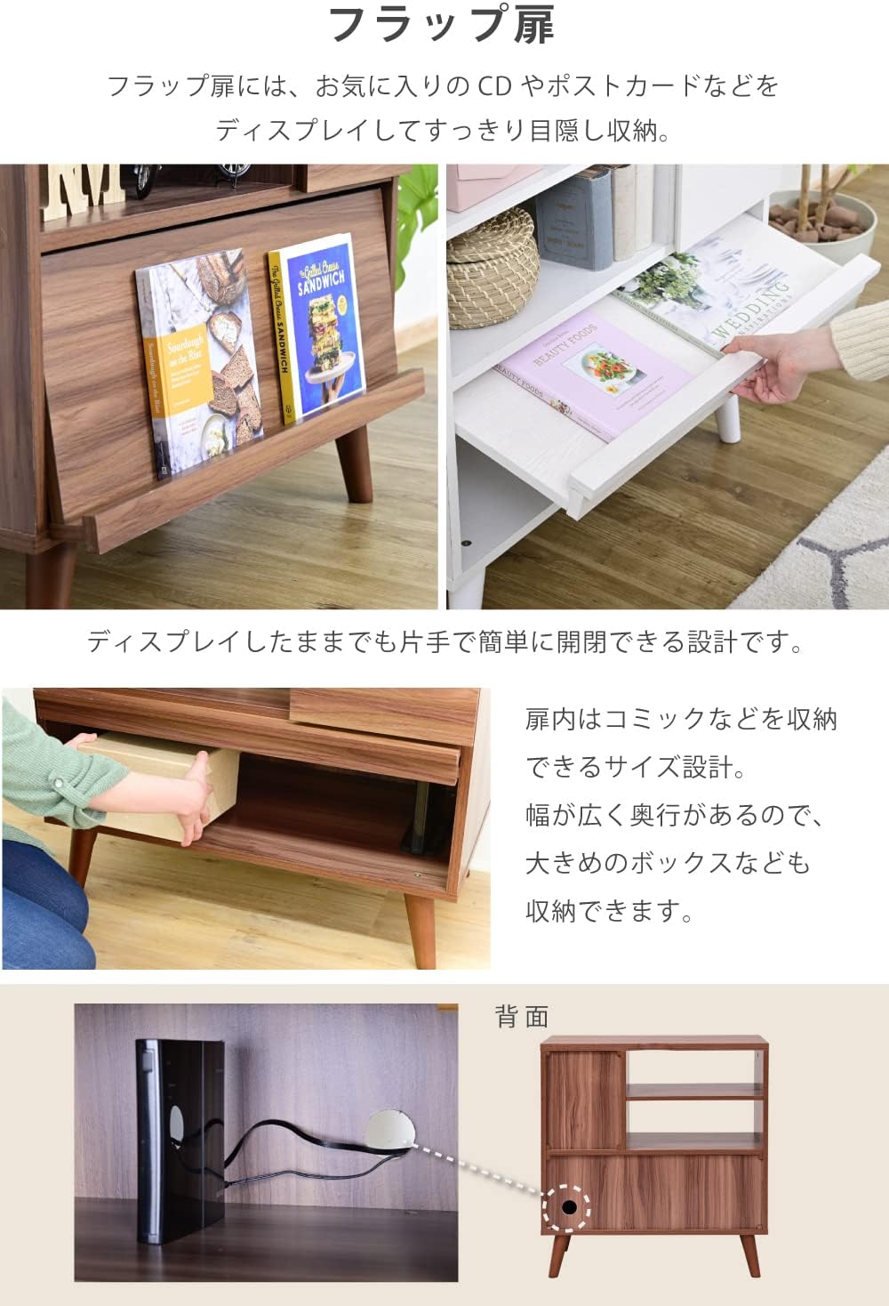 FMC-0006-BR Cabinet Nordic Display Rack Stylish Living Board High Type Living Chest Flap Sideboard White Brown Width 29.5 inches (75 cm)