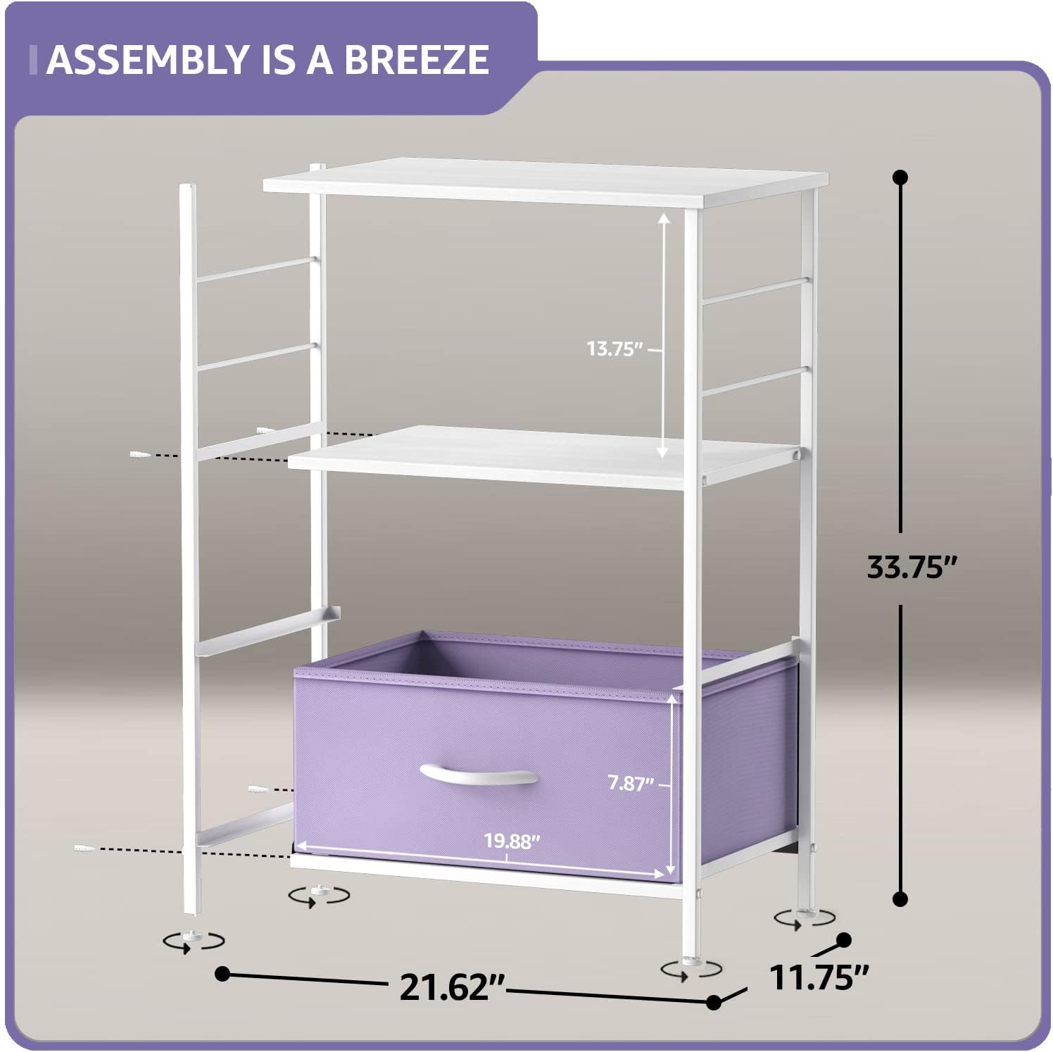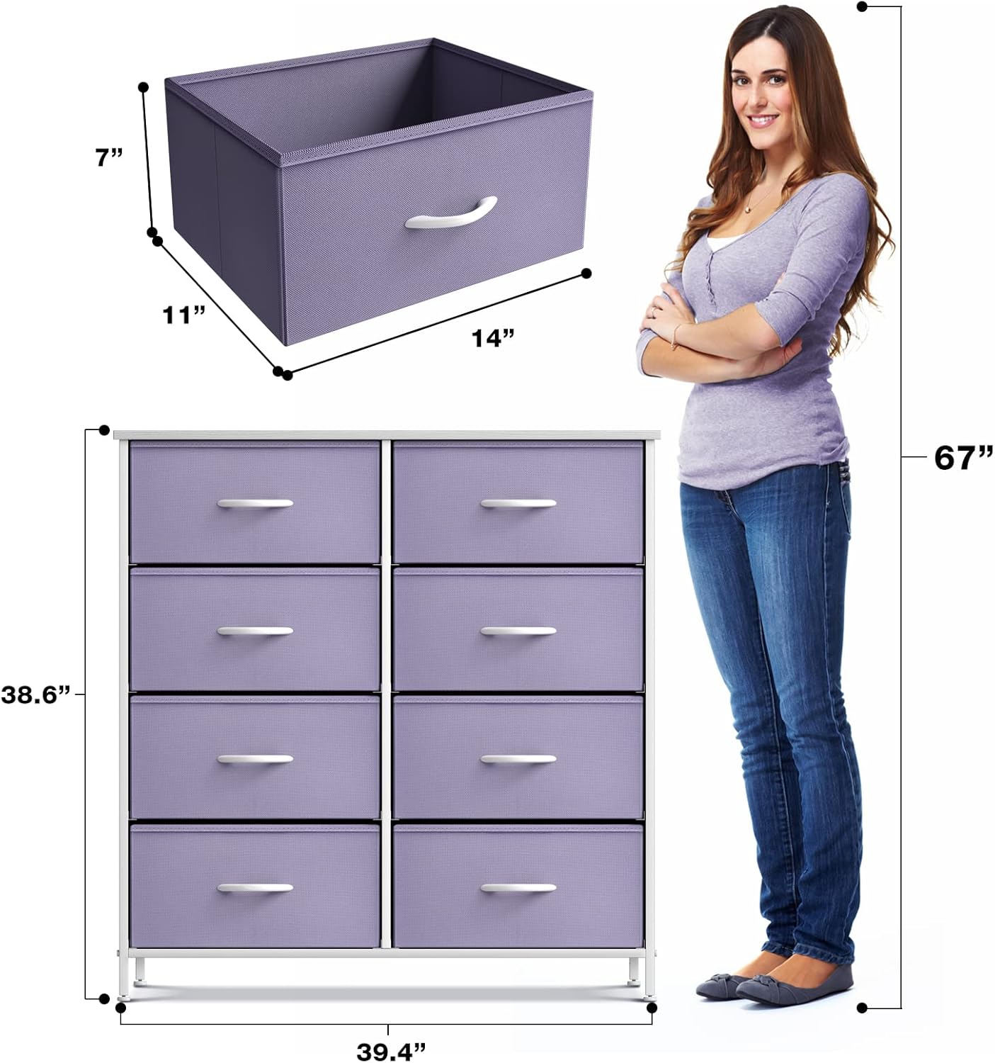 Sorbus Kids Dresser with 8 Drawers and 2 Drawer Nightstand Bundle - Matching Furniture Set - Storage Unit Organizer Chests for Clothing - Bedroom, Kids Rooms, Nursery, & Closet (Purple)