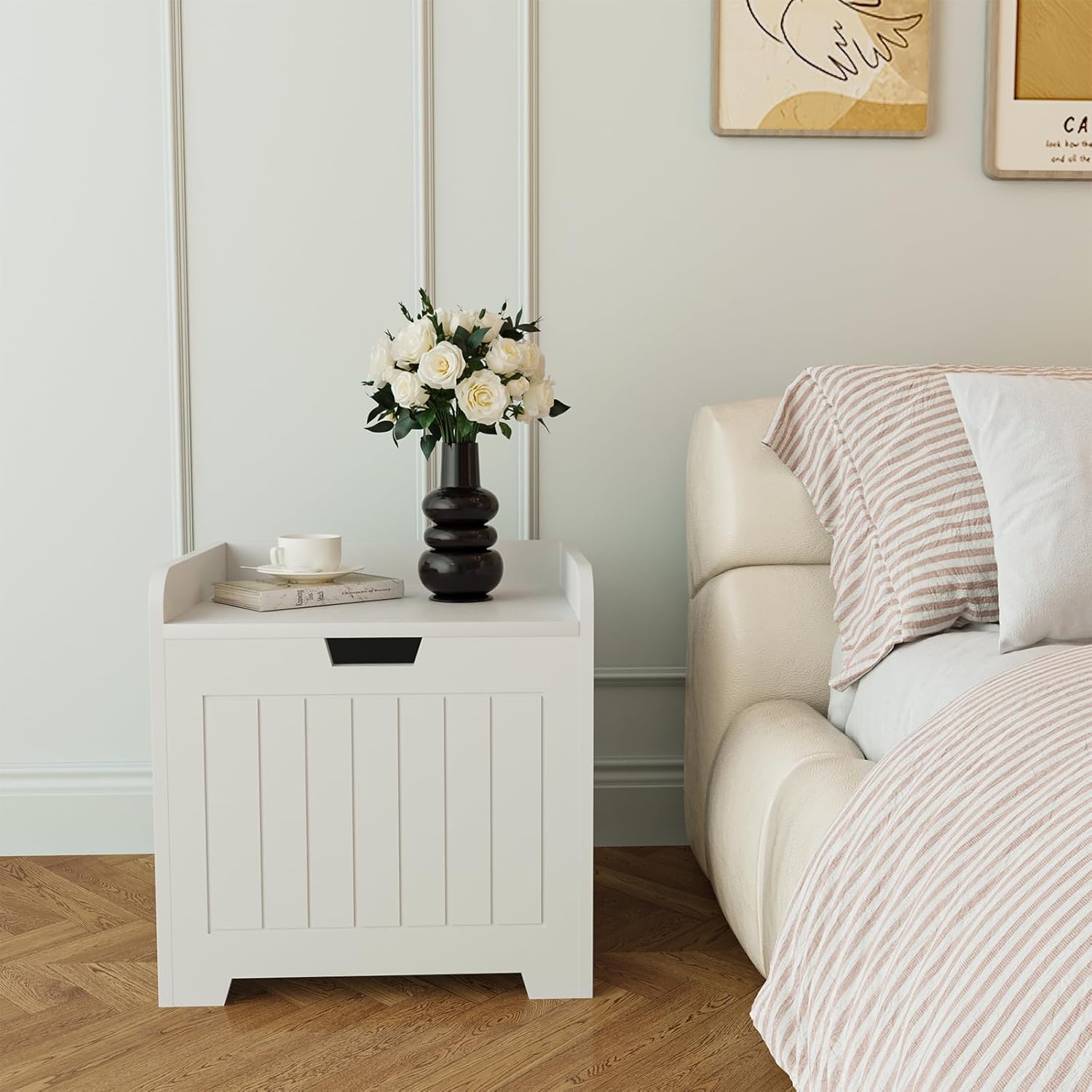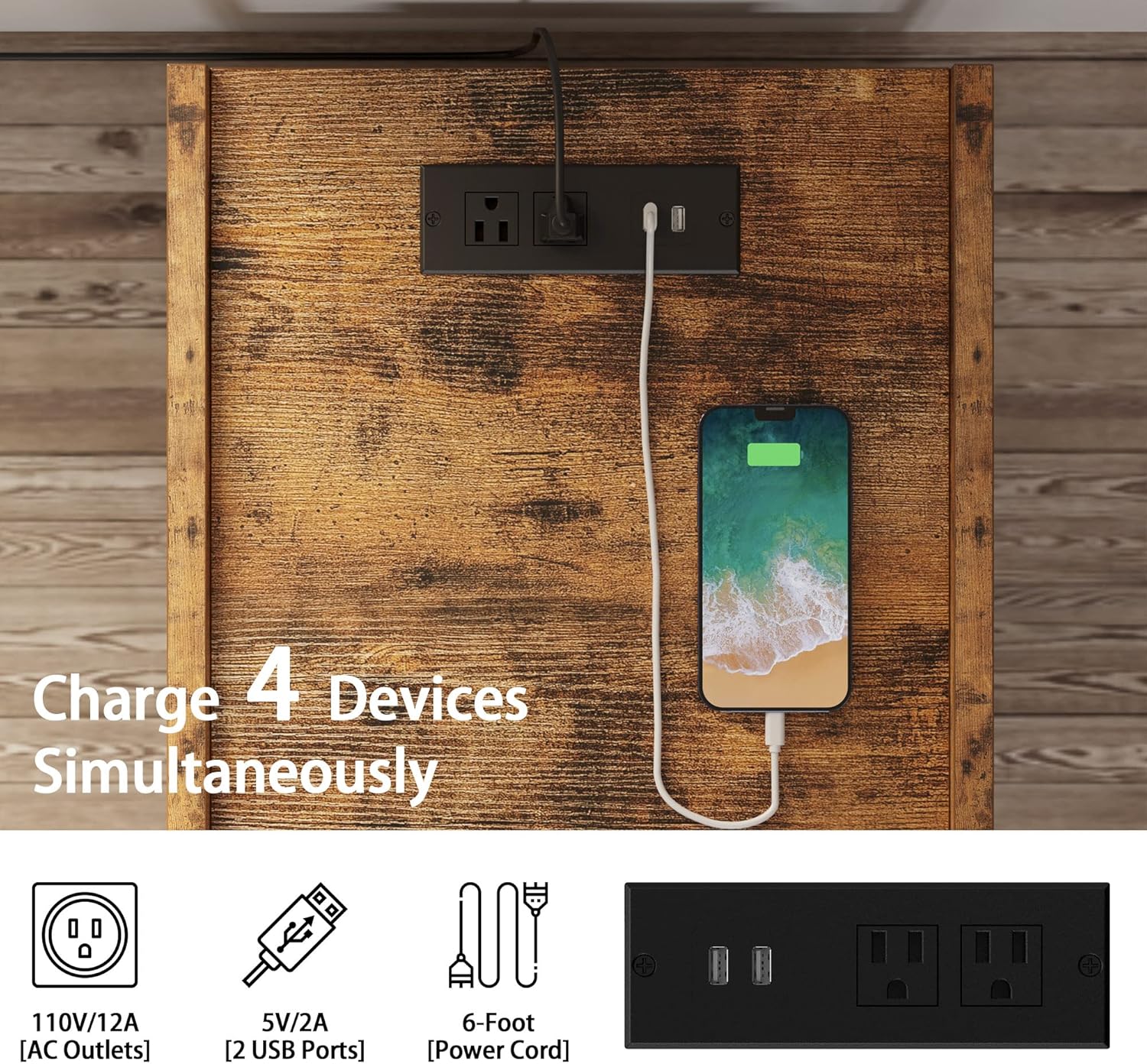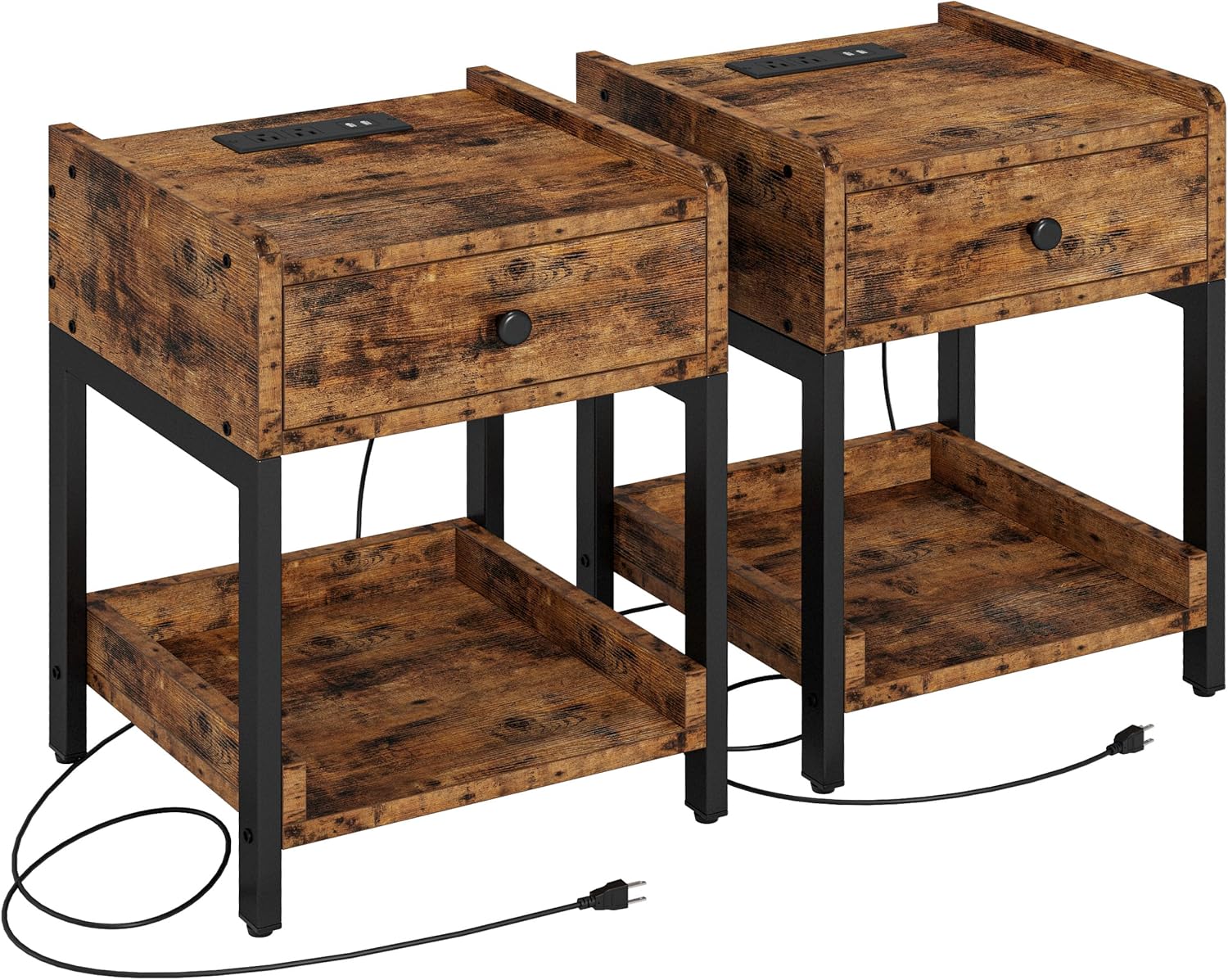 LIKIMIO Storage Bench with Flip Top Chest and Drawers, Nightstand Set of 2 with Charging Station, Bedside Tables with Drawer and Shelf, Vintage Brown