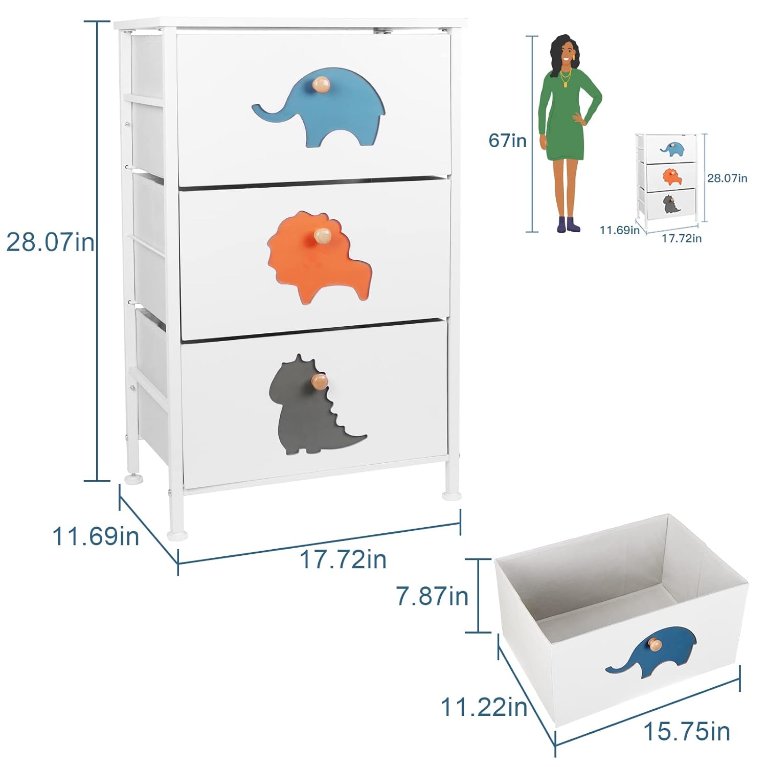 FRAPOW 3 Drawers Kids Dresser Bundle with 4 Drawers Children Dressers, Boys Storage Organizer Dresser for Baby Child Bedroom