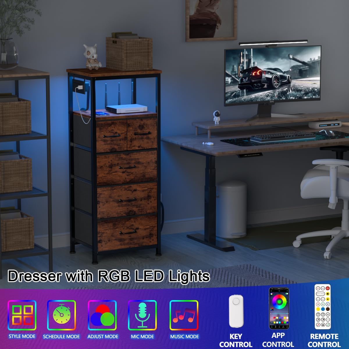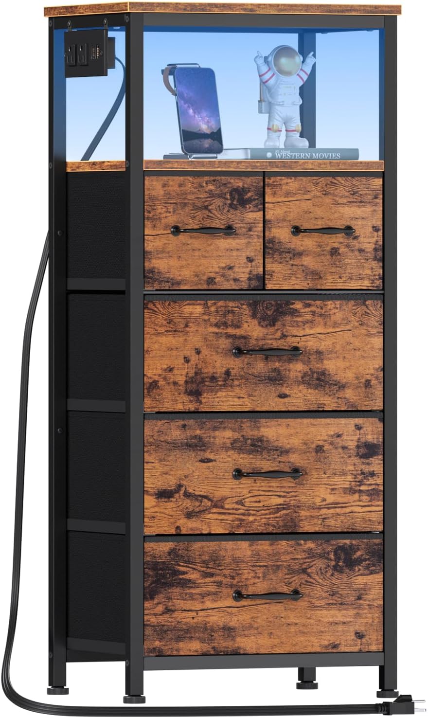 Furnulem Dresser TV Stand for Bedroom & Dresser for Bedroom with Charging Station and LED Lights