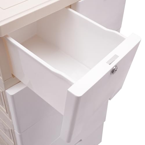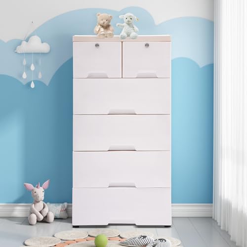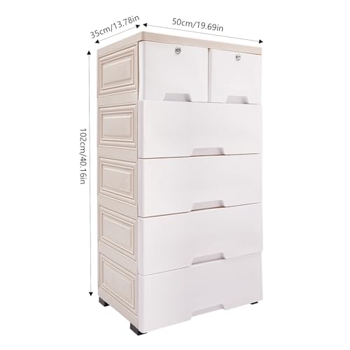Plastic Drawers Dresser with 6 Drawers, 19.69 * 13.78 * 40.16 inch PP Plastic Tower Closet Organizer with Wheels and Lock Suitable for Apartments Condos Dorm Rooms (Gradient Pink)