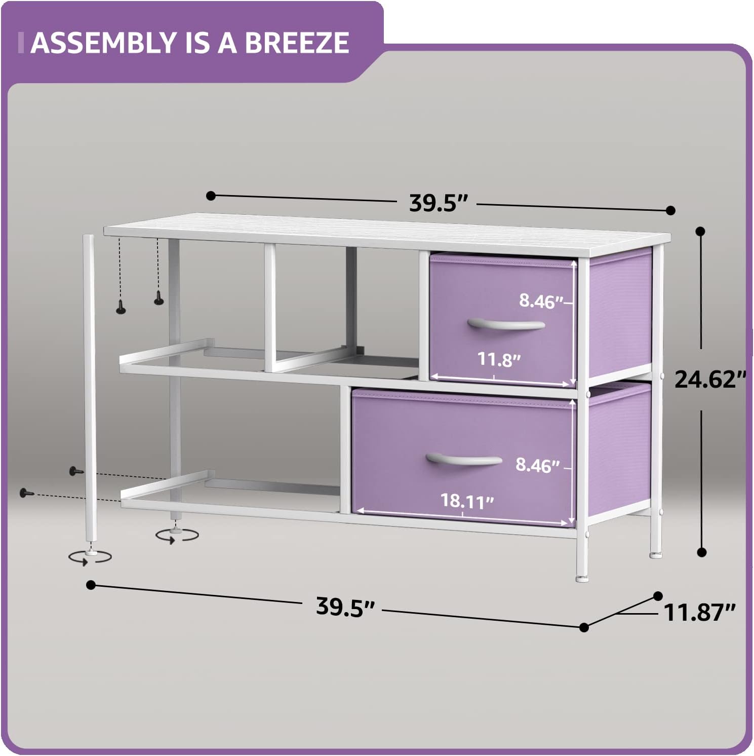 Sorbus Kids Dresser with 8 Drawers and 5 Drawer TV Stand Bundle - Matching Furniture Set - Storage Unit Organizer Chests for Clothing - Bedroom, Kids Rooms, Nursery, & Closet (Purple)