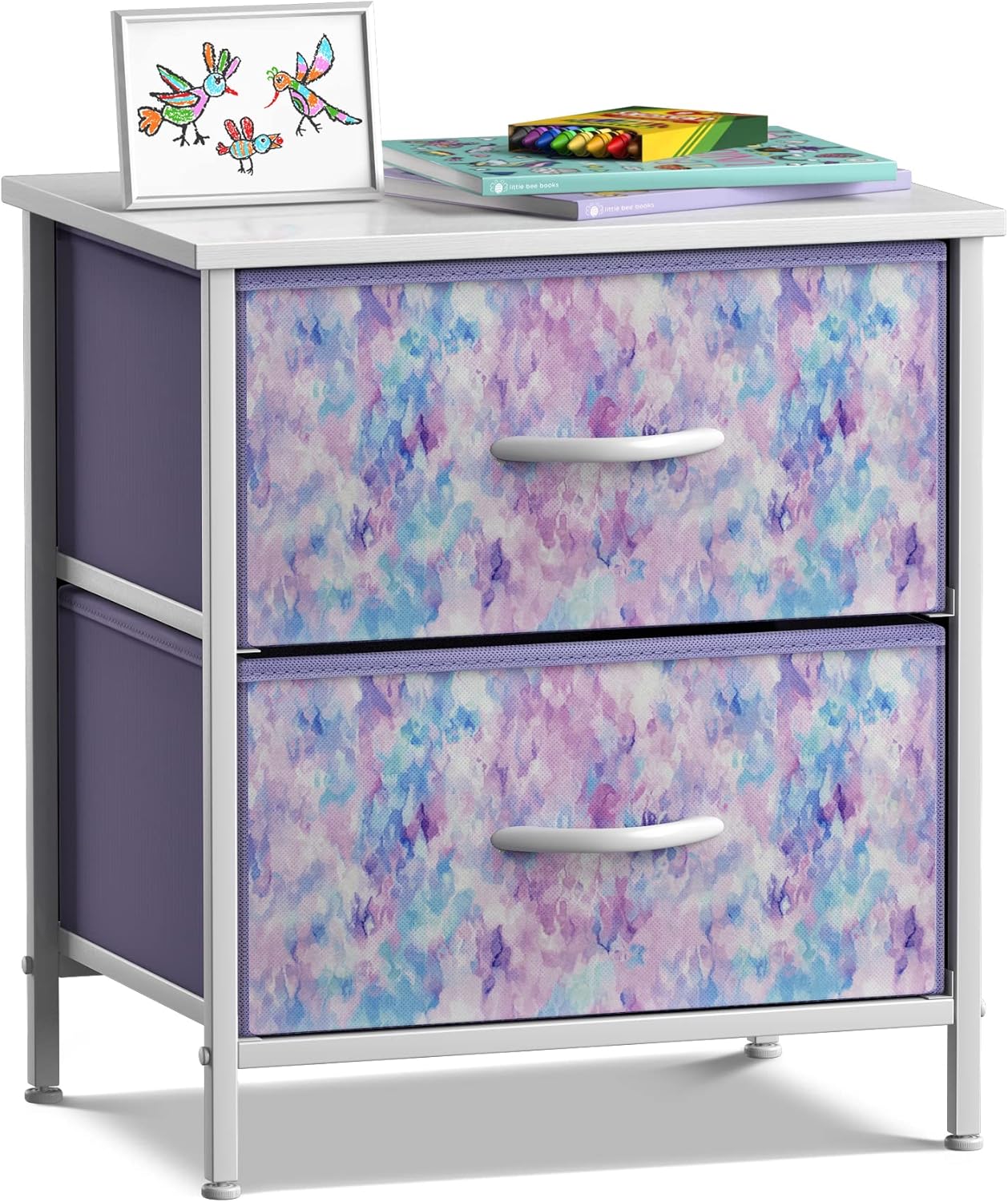 Sorbus Kids Dresser with 8 Drawers and 2 Drawer Nightstand Bundle - Matching Furniture Set - Storage Unit Organizer Chests for Clothing - Bedroom, Kids Rooms, Nursery, & Closet (Tie Dye)