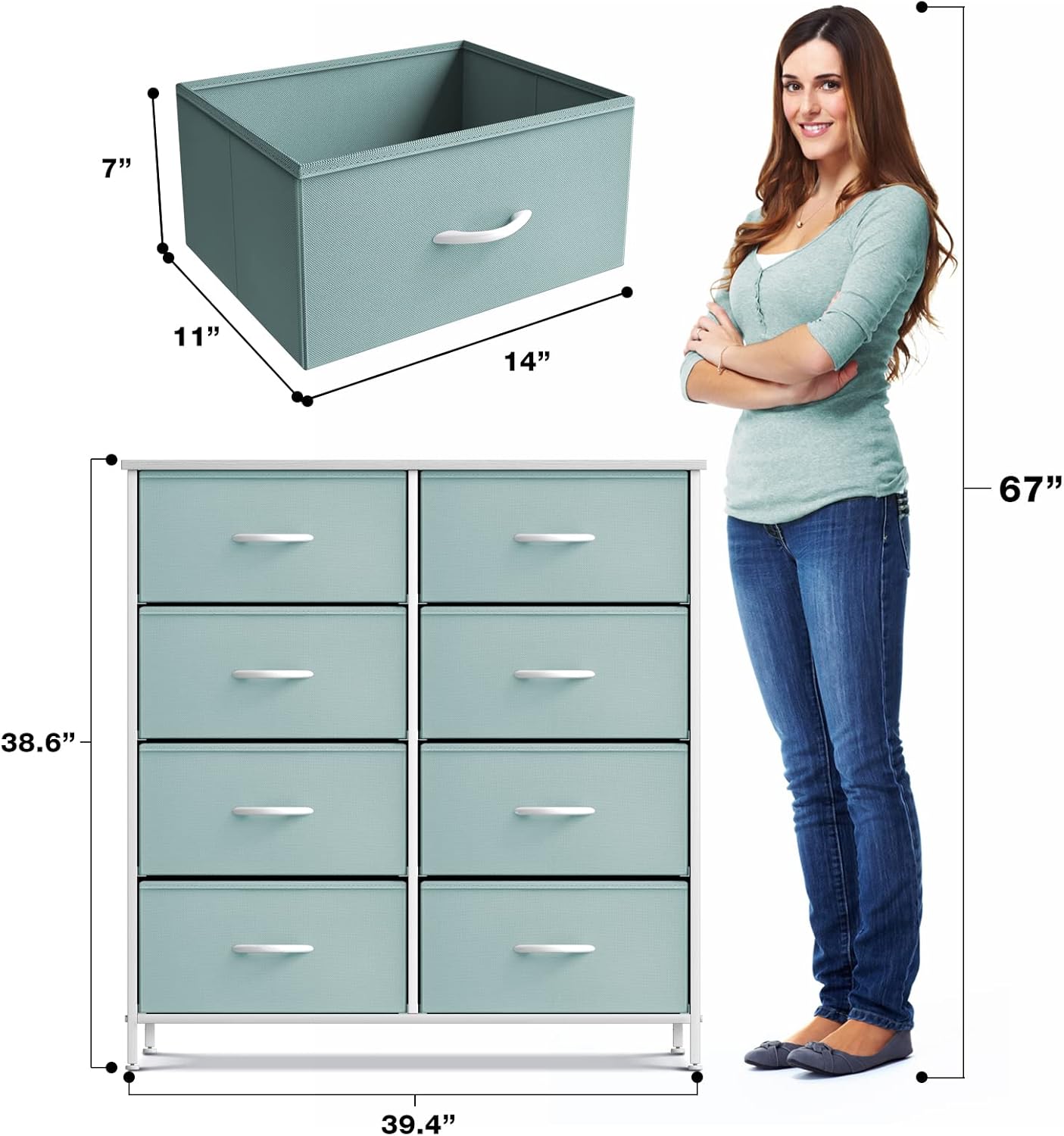 Sorbus Kids Dresser with 8 Drawers and 2 Drawer Nightstand Bundle - Matching Furniture Set - Storage Unit Organizer Chests for Clothing - Bedroom, Kids Rooms, Nursery, & Closet (Aqua)