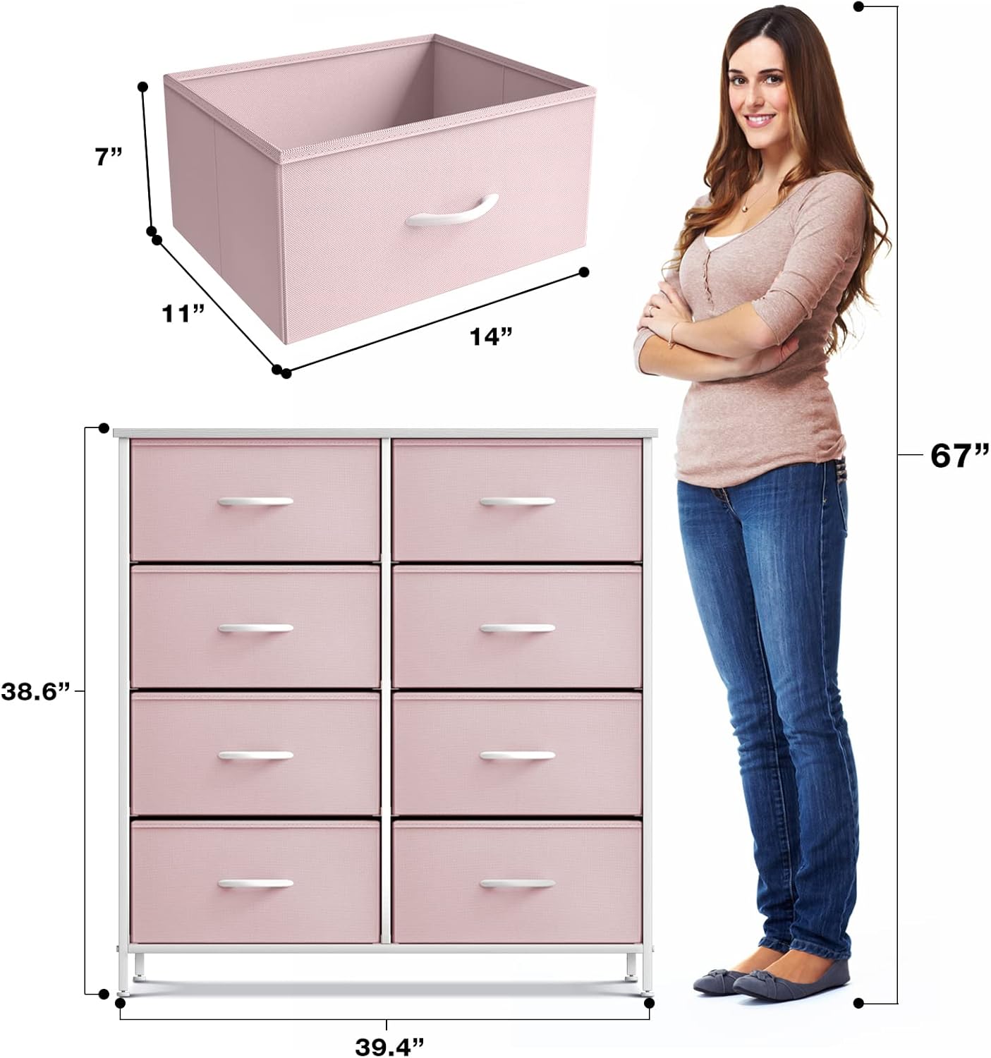 Sorbus Kids Dresser with 8 Drawers and 1 Drawer Nightstand Bundle - Matching Furniture Set - Storage Unit Organizer Chests for Clothing - Bedroom, Kids Rooms, Nursery, & Closet (Pink)