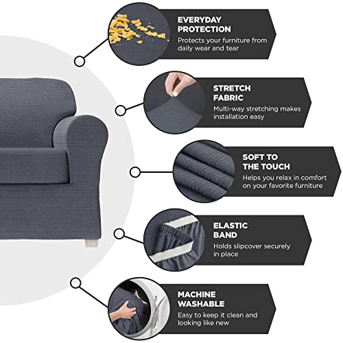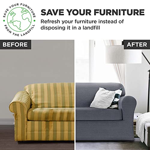 Zenna Home 4-Piece Chenille Stretch Sofa Slipcover, Ivory