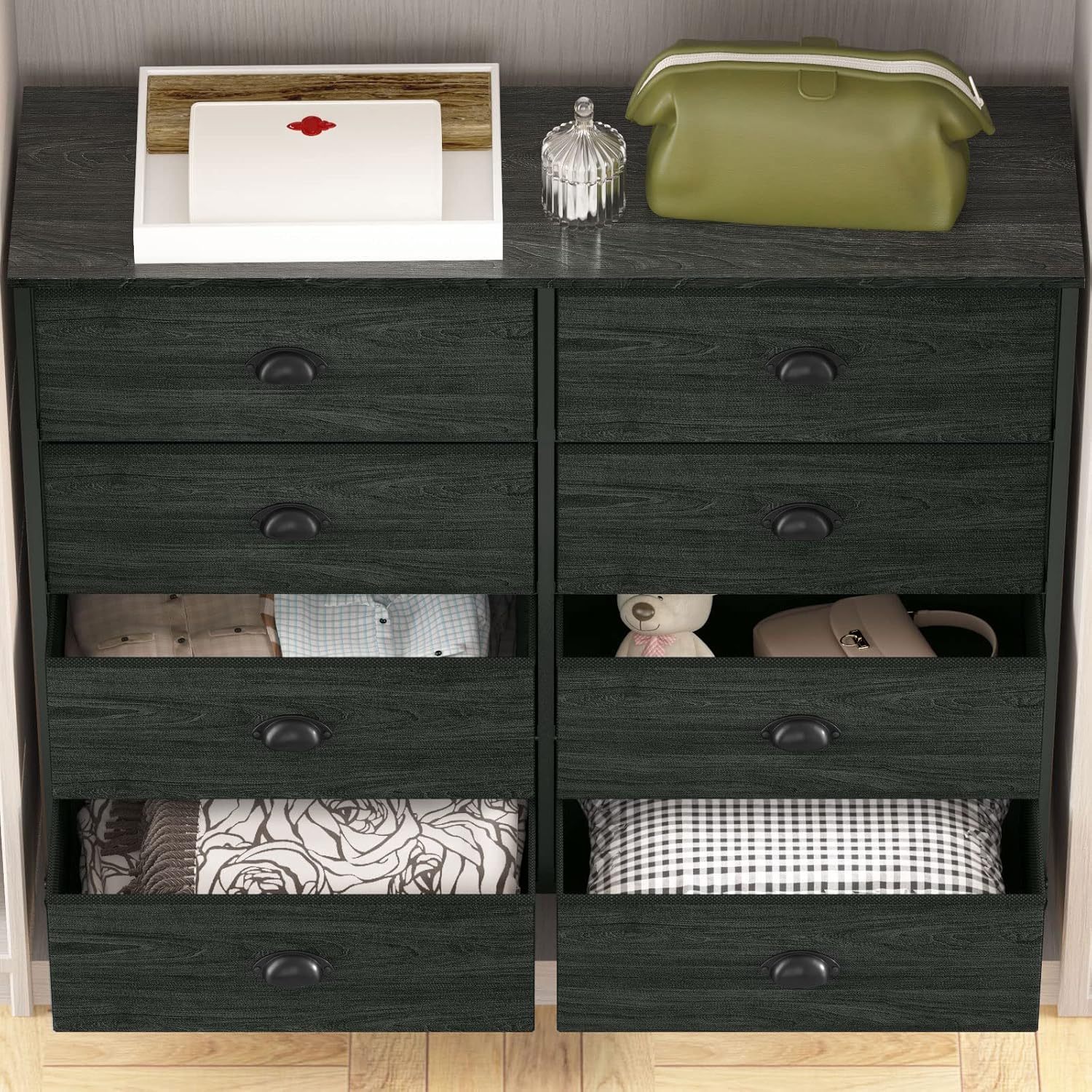 YITAHOME 8-Drawer Fabric Dresser with Shelves, Furniture Storage Tower Cabinet & Fabric Dresser with 7 Drawers - Storage Tower with Large Capacity, Organizer Unit for Living Room