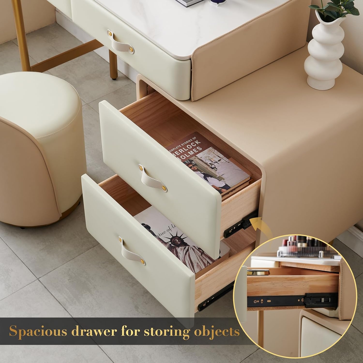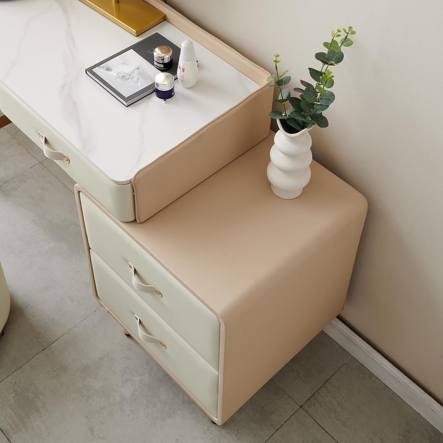 Makeup Vanity Desk with Slate Countertop Dressing Table Set with 4 Storage Drawers, Pinkish White